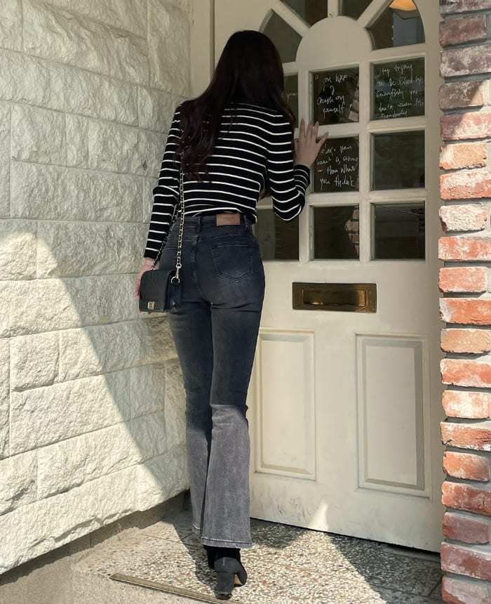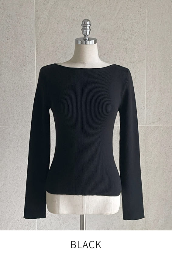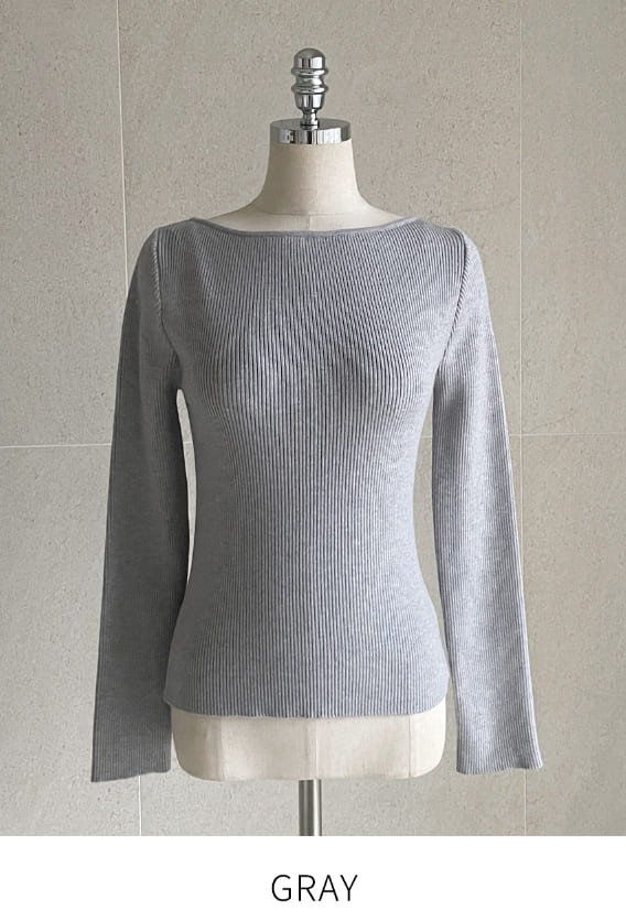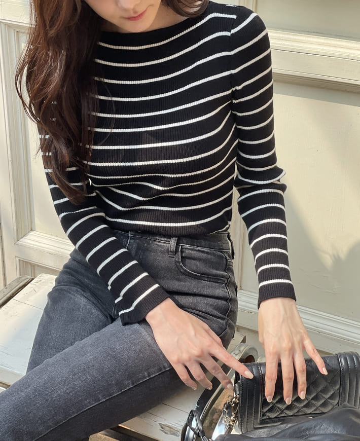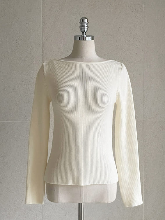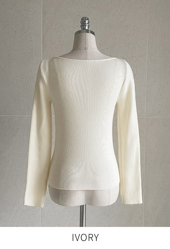 ジュディエルボーダーリブボートネックニット