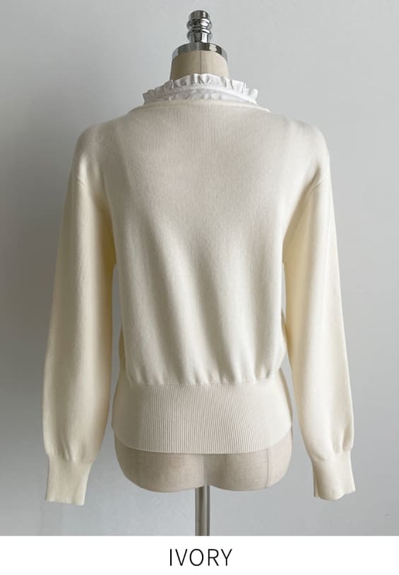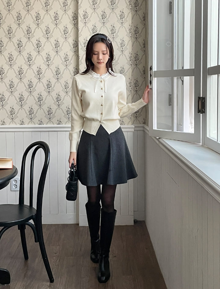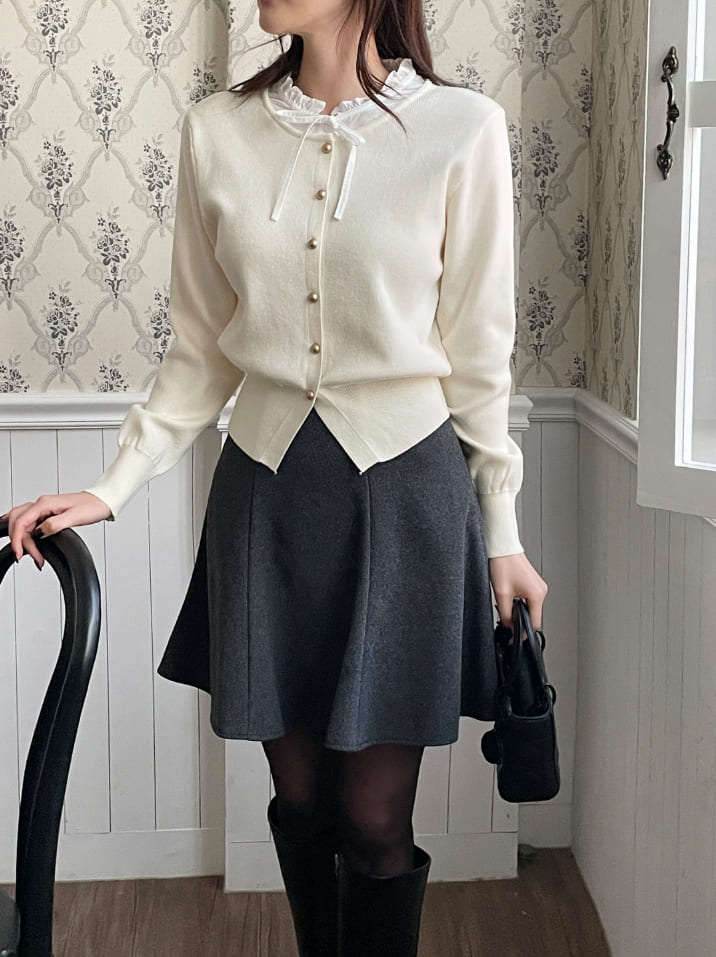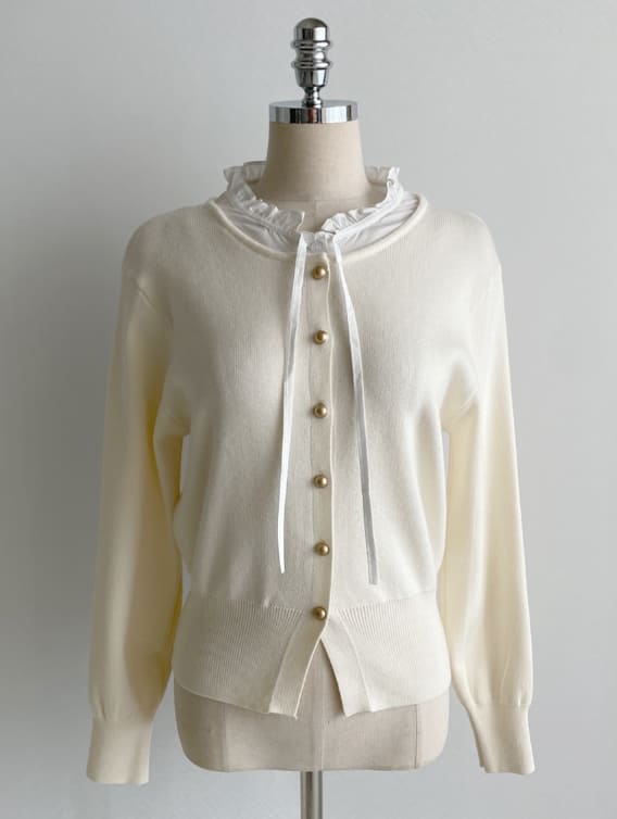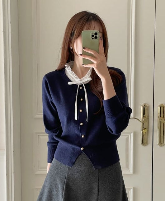 Kiren Layered Ribbon Blouse Knit Cardigan