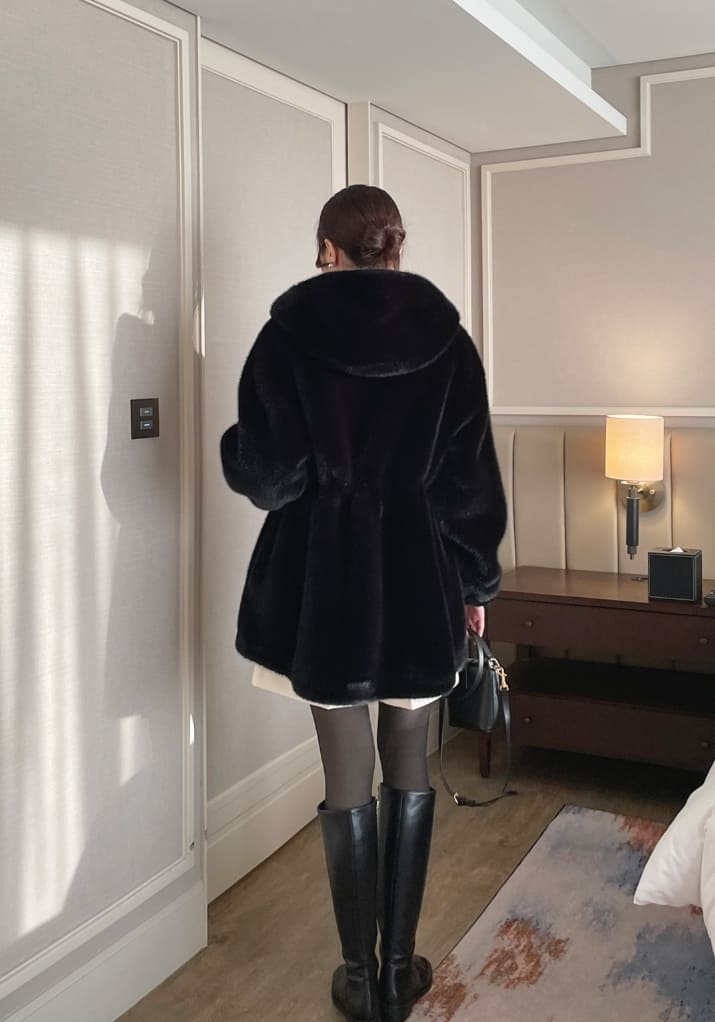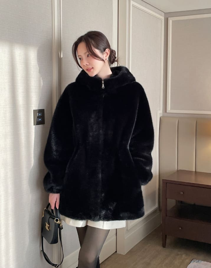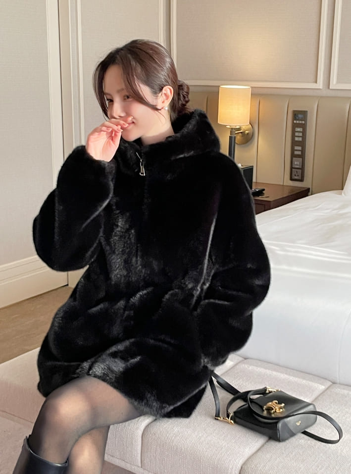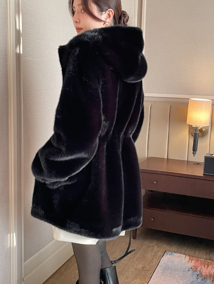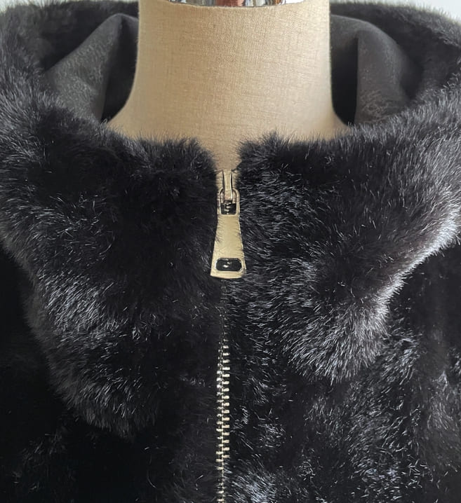 Lenu String Ecofur Mink Mustang Hood Zip-Up