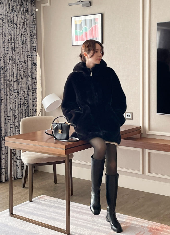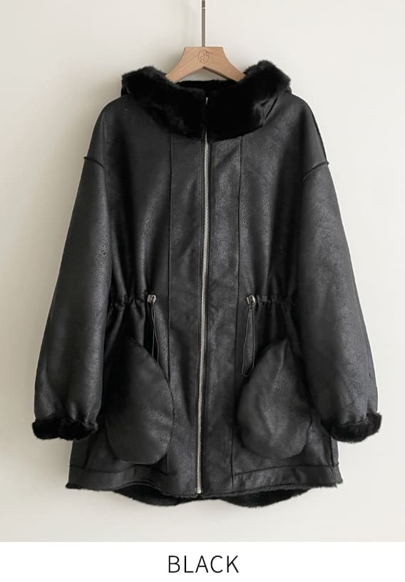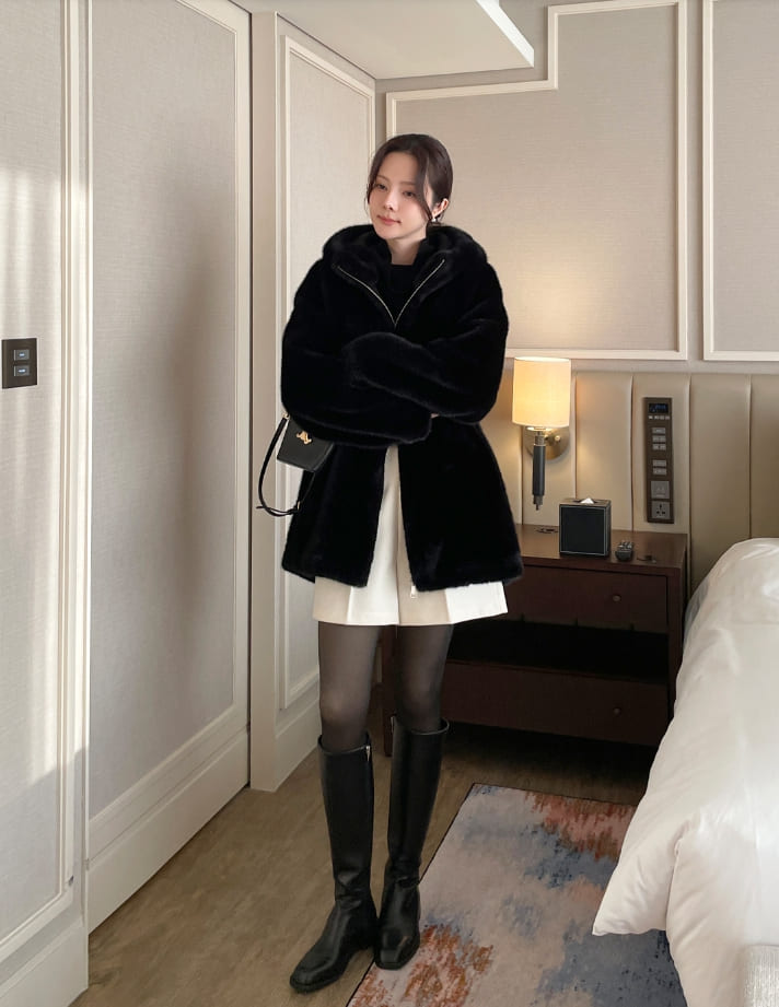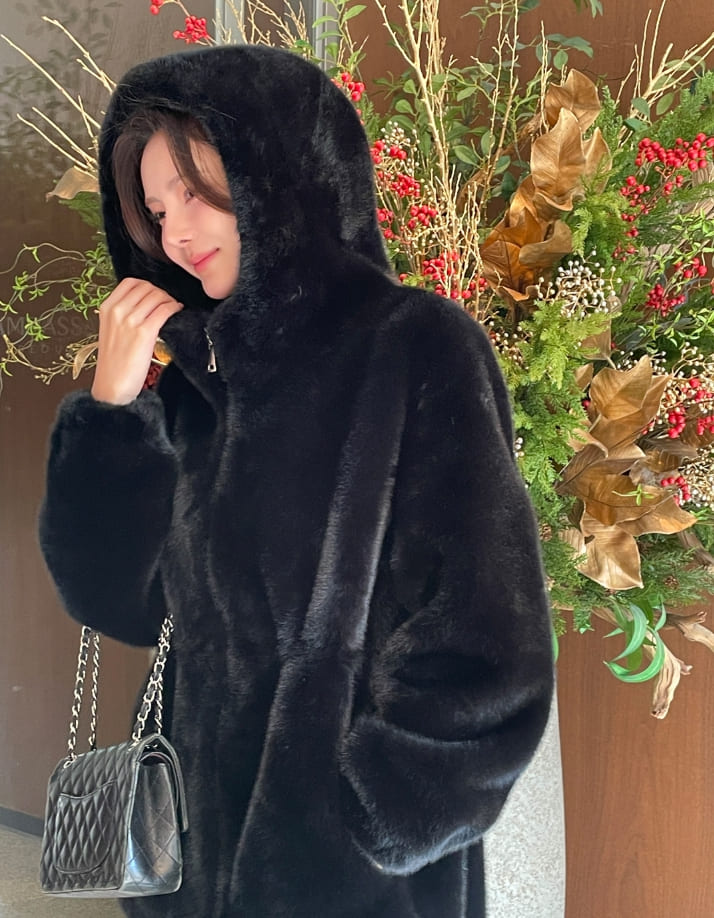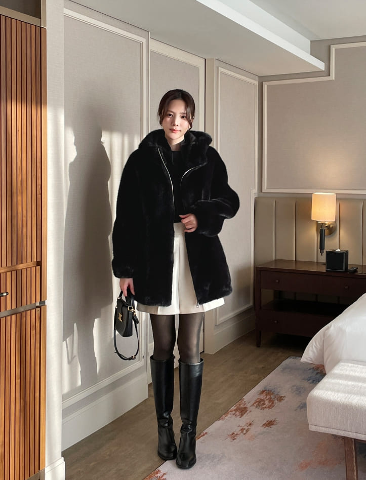 Lenu String Ecofur Mink Mustang Hood Zip-Up