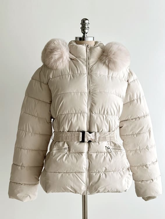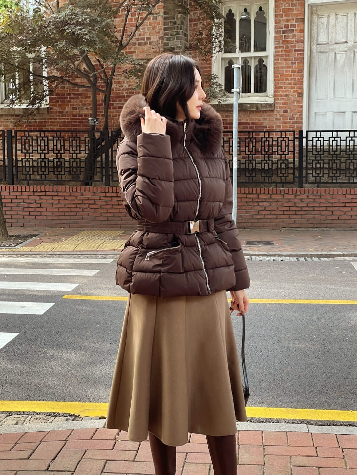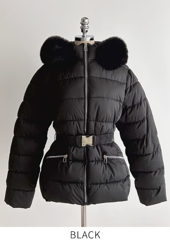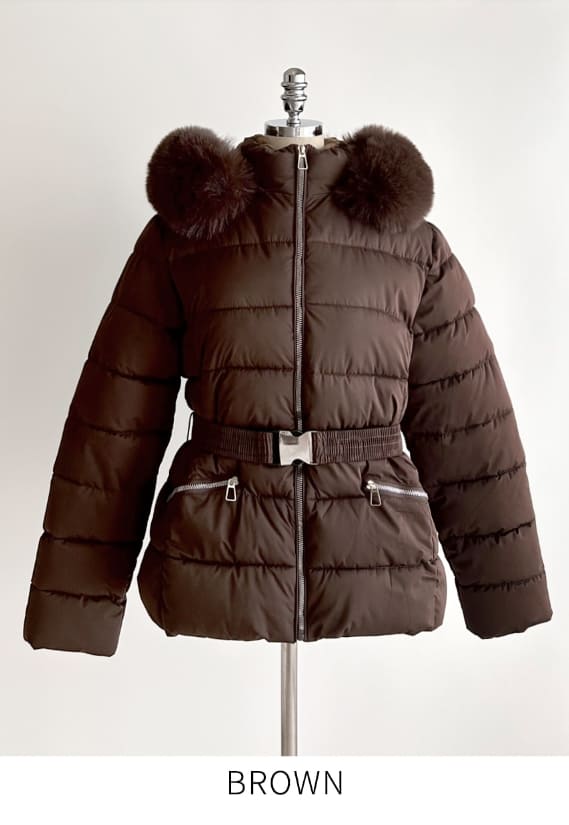 Loera Fur Hood Short Padding Jumper (Belt Set)