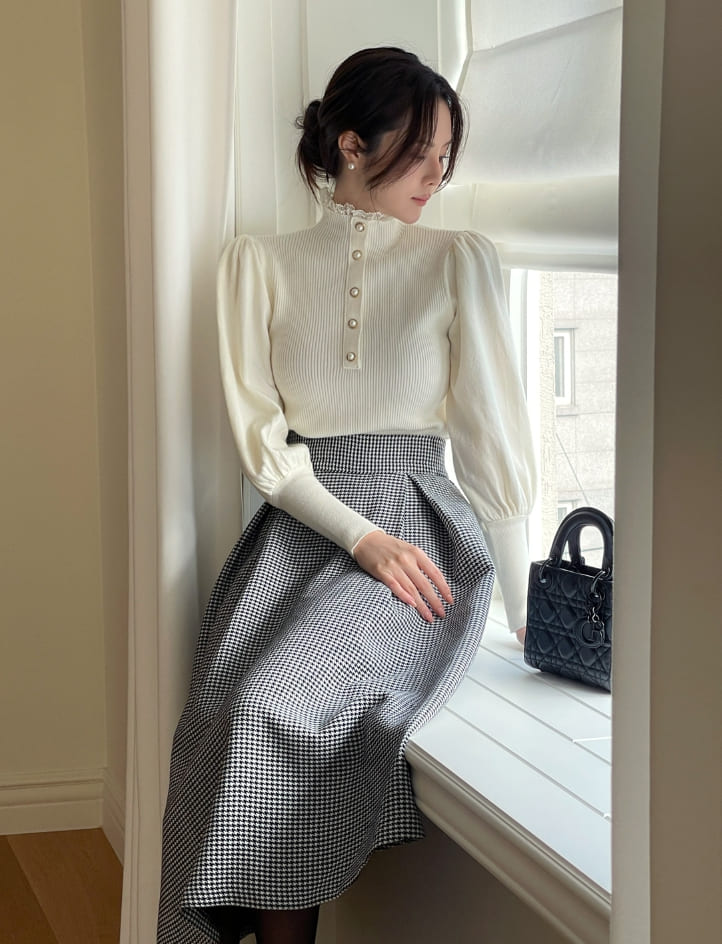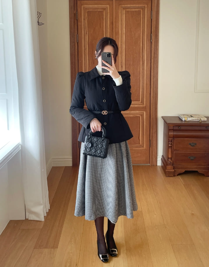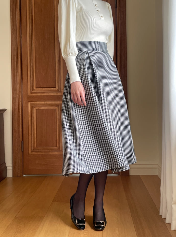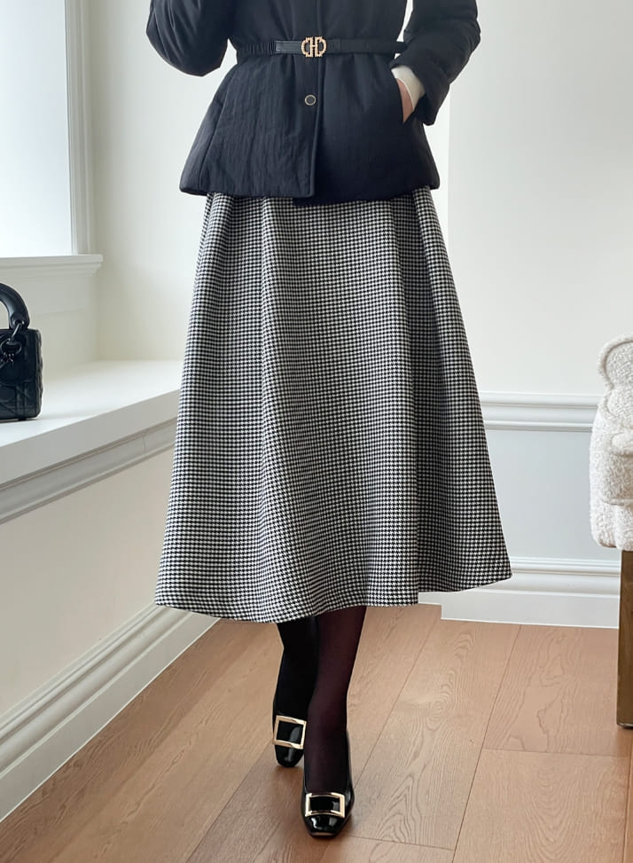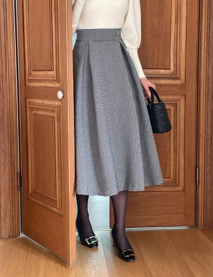 マリンハウンドチェック裏起毛スパンフレアスカート