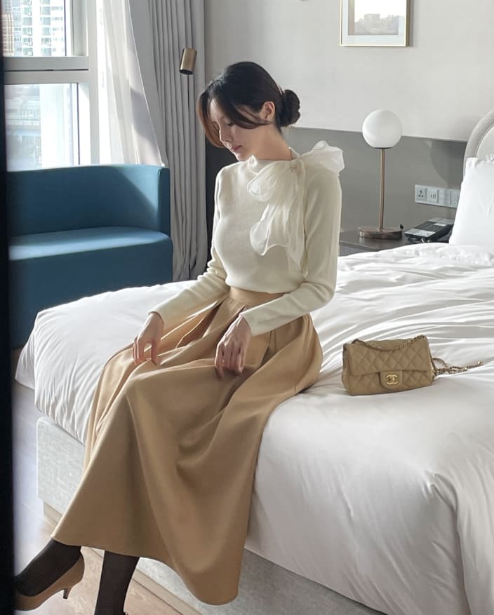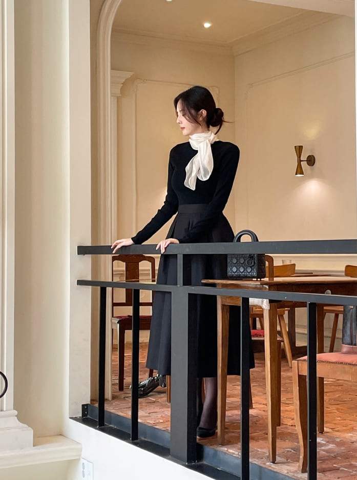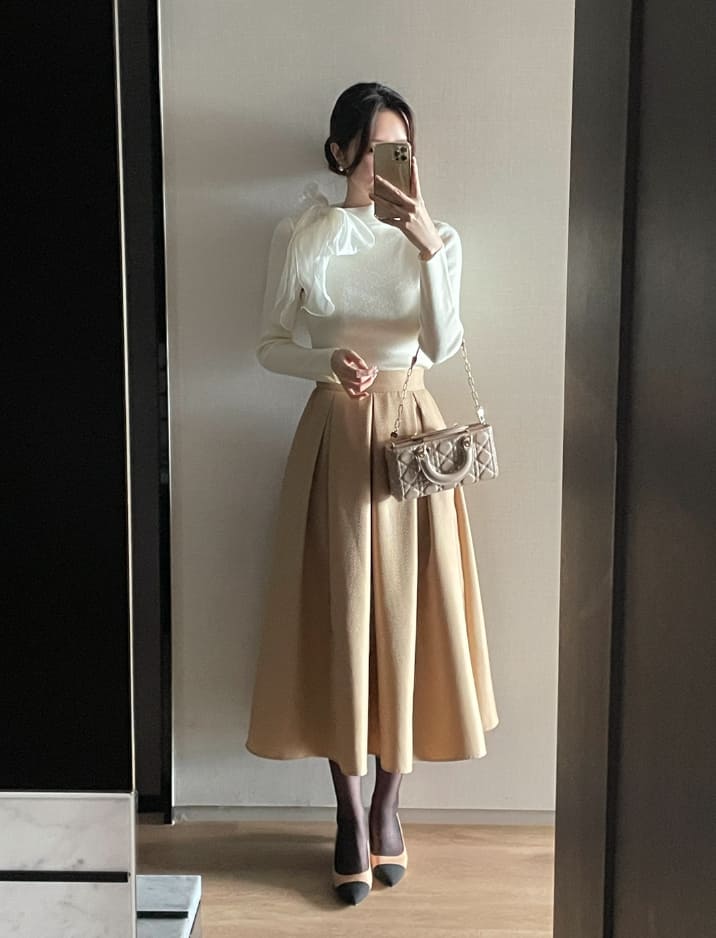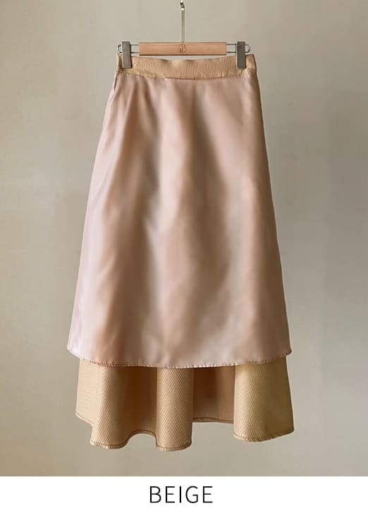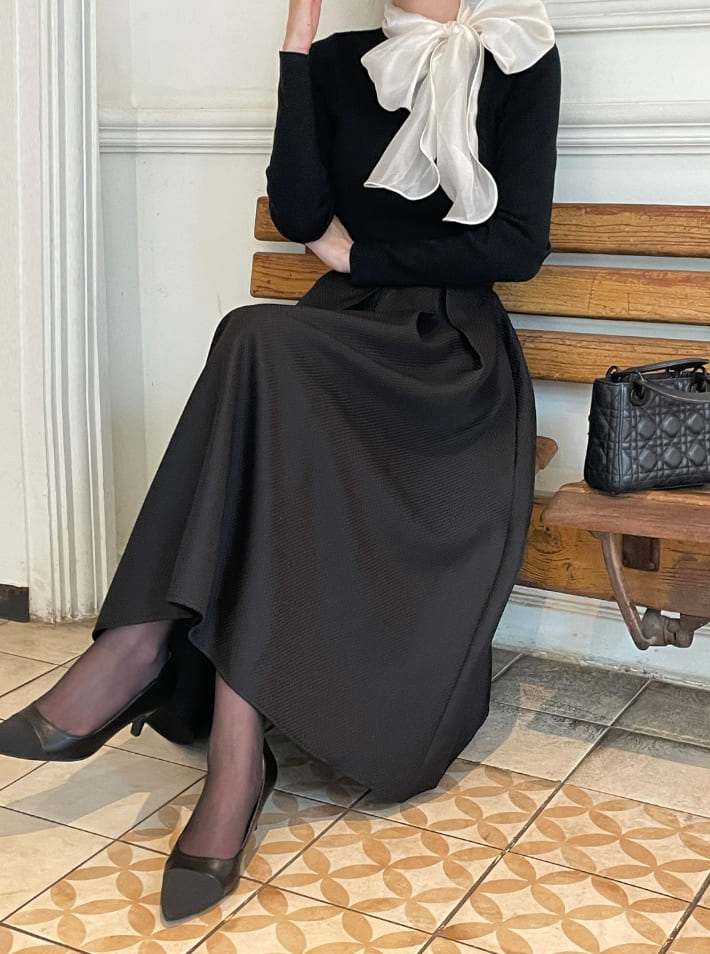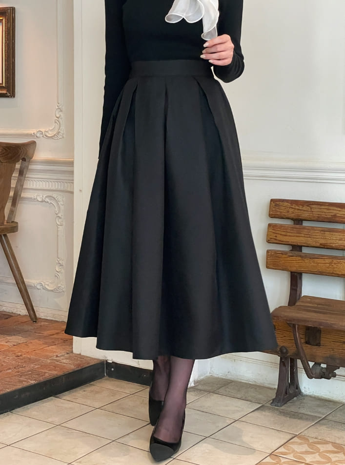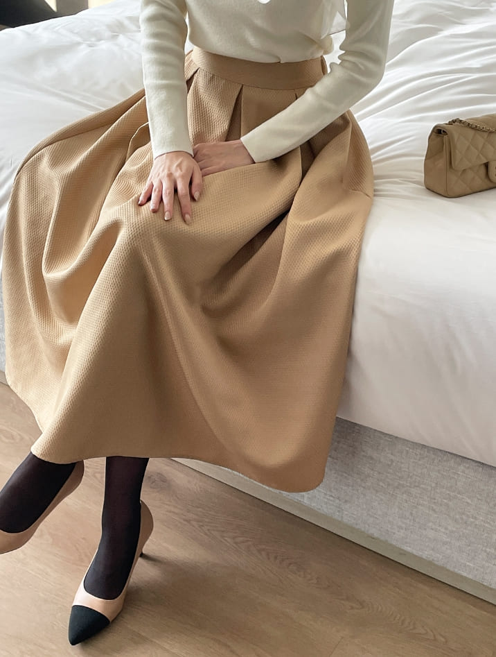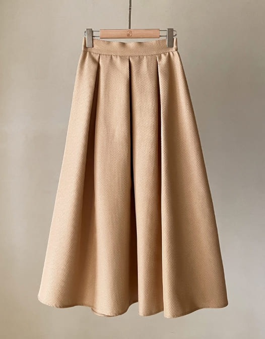 Mazren Jacquard Banding Pleat Long Skirt