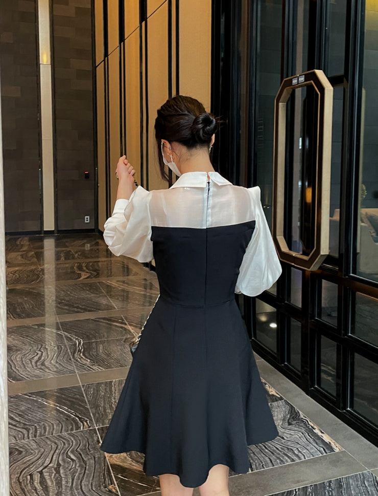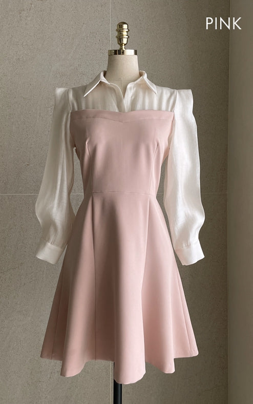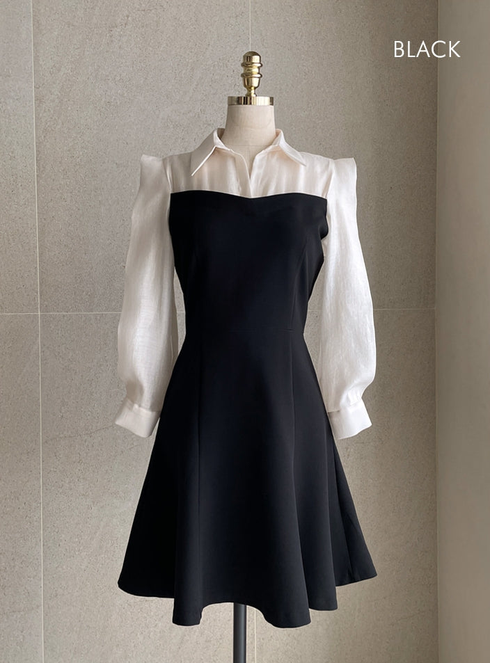 メロド配色フレアワンピース