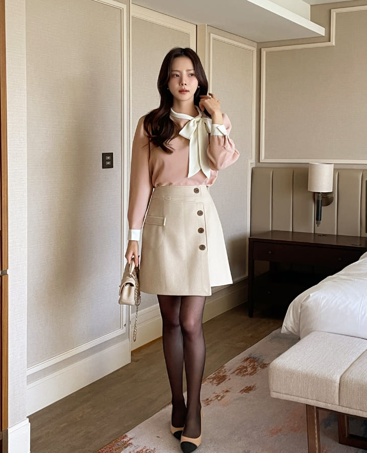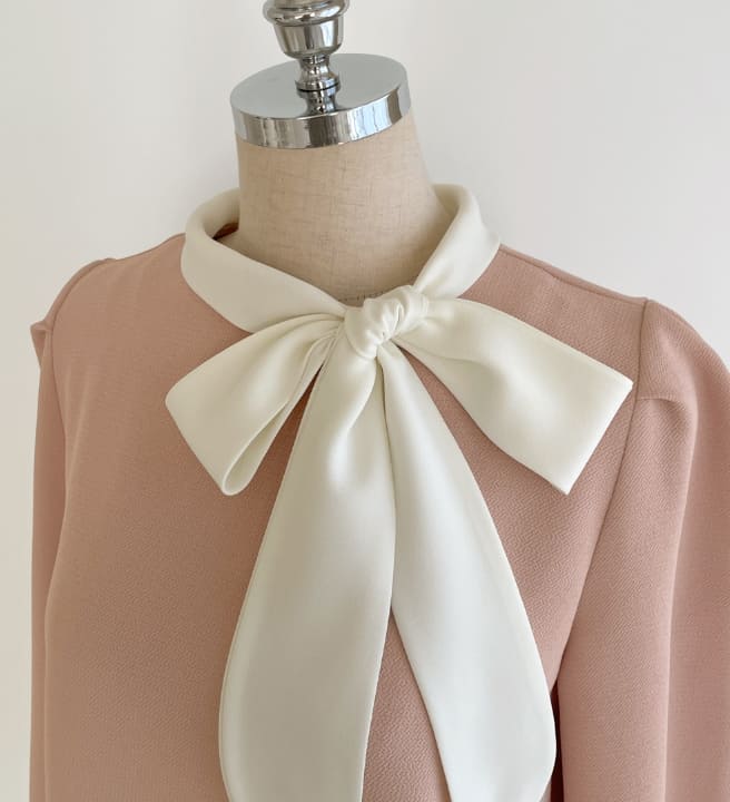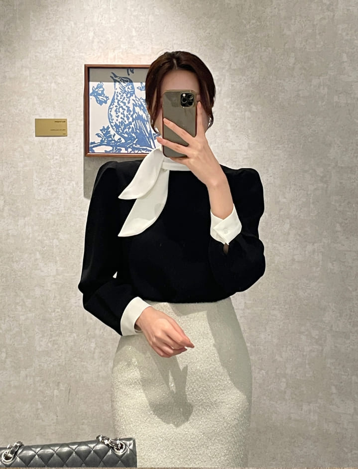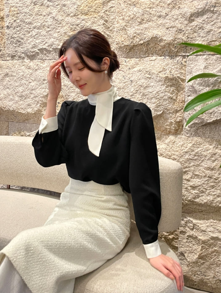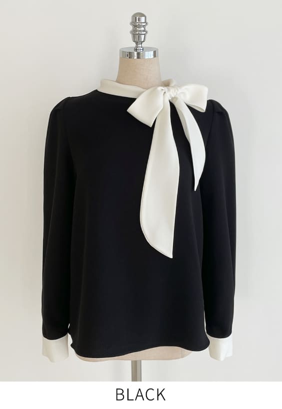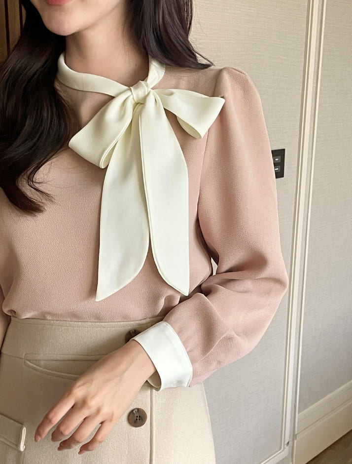 Mood Tie Color Matching Puff Blouse