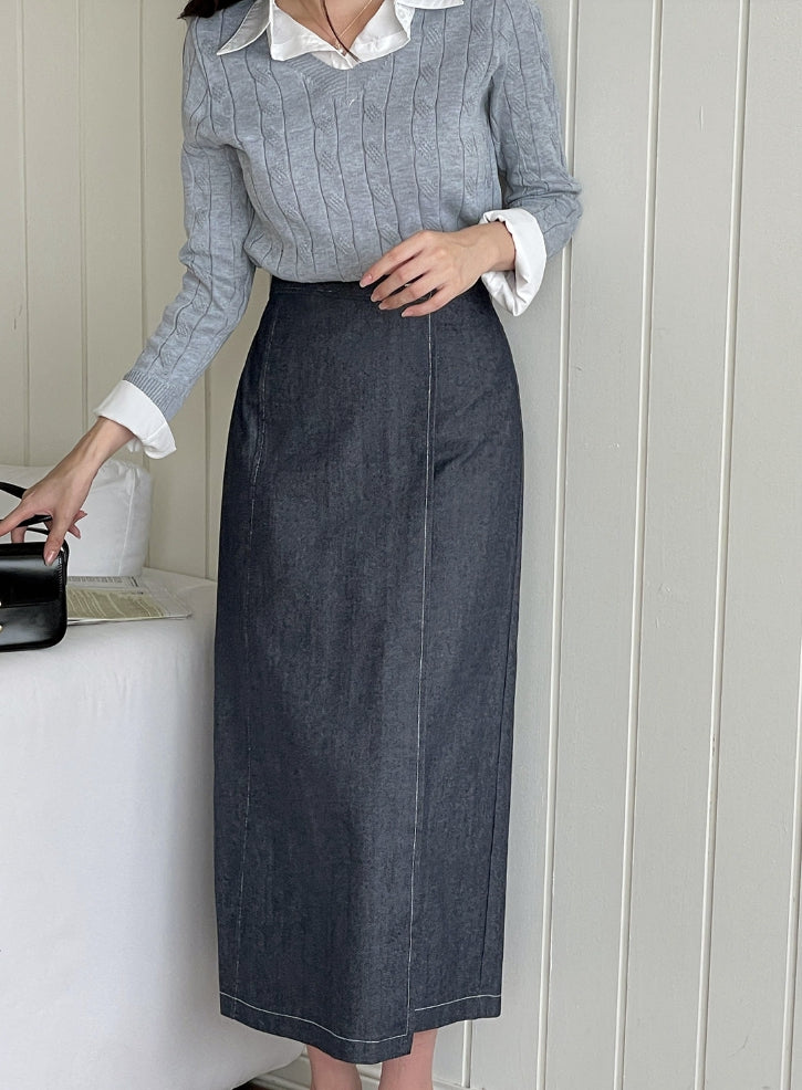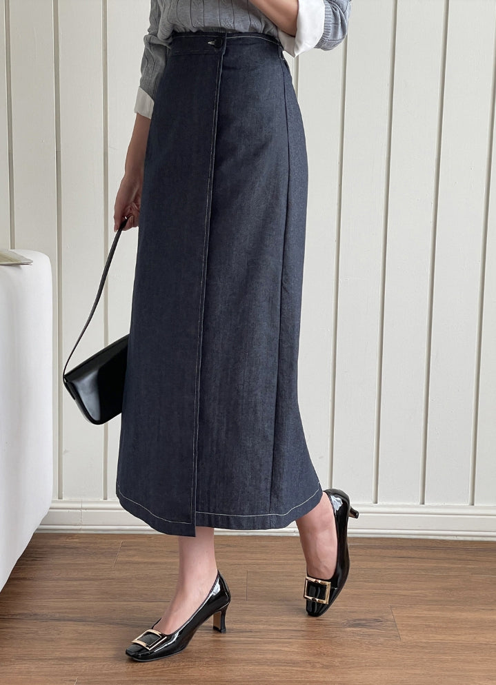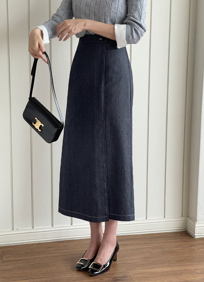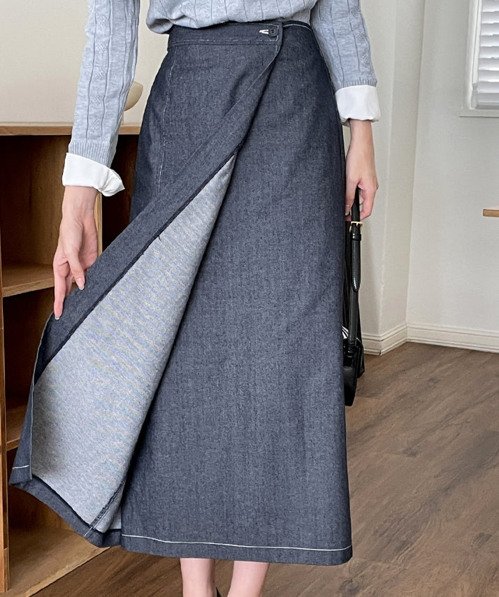 Perroche Stitch Denim Wrap Banding Skirt