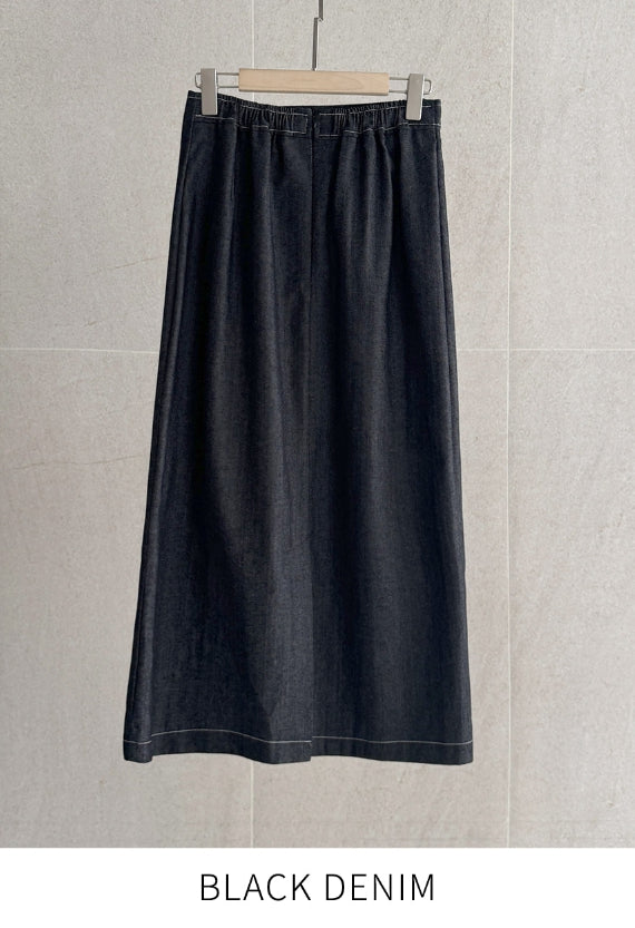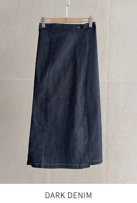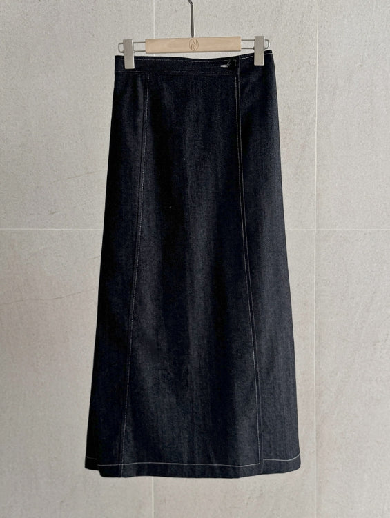 ペローシュスティッチデニムラップバンディングスカート