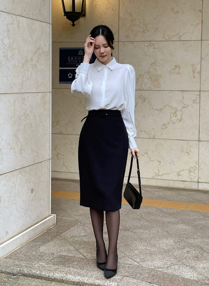 [Planning] Marinell Hidden Button Puff Shirt Blouse
