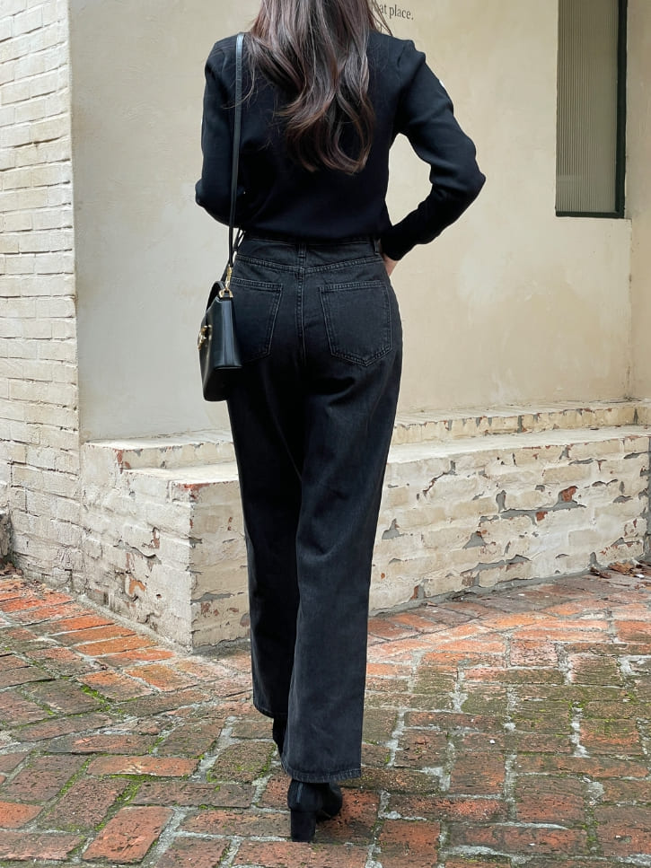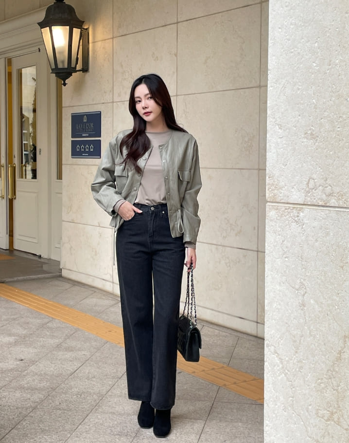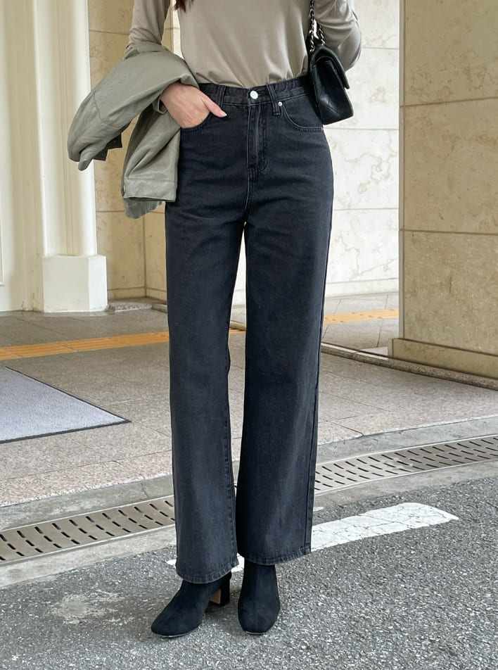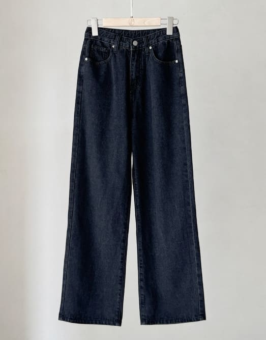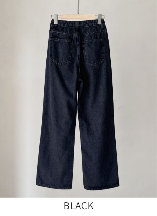 Press Cotton Wide Banding Denim Pants