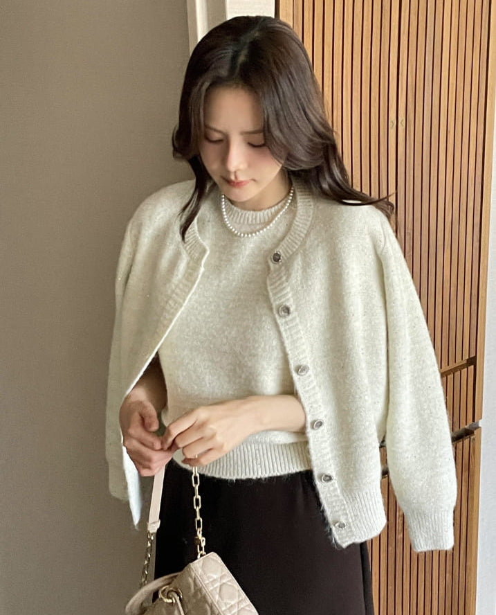 Queenb Sequin Sleeveless Knit Cardigan Set