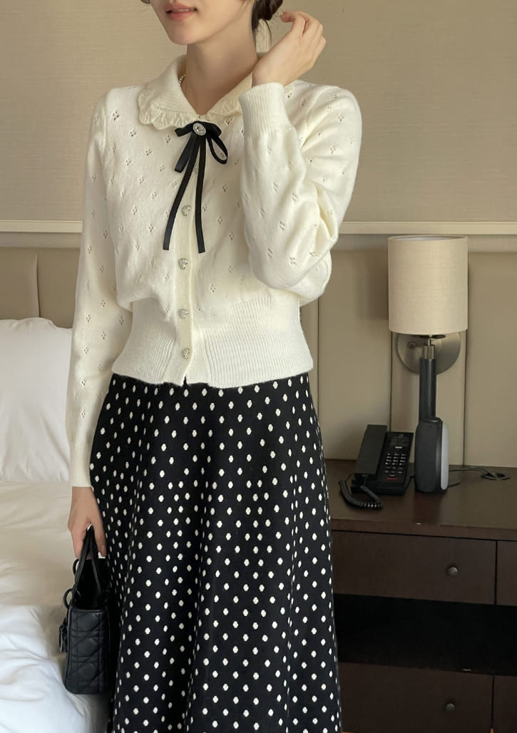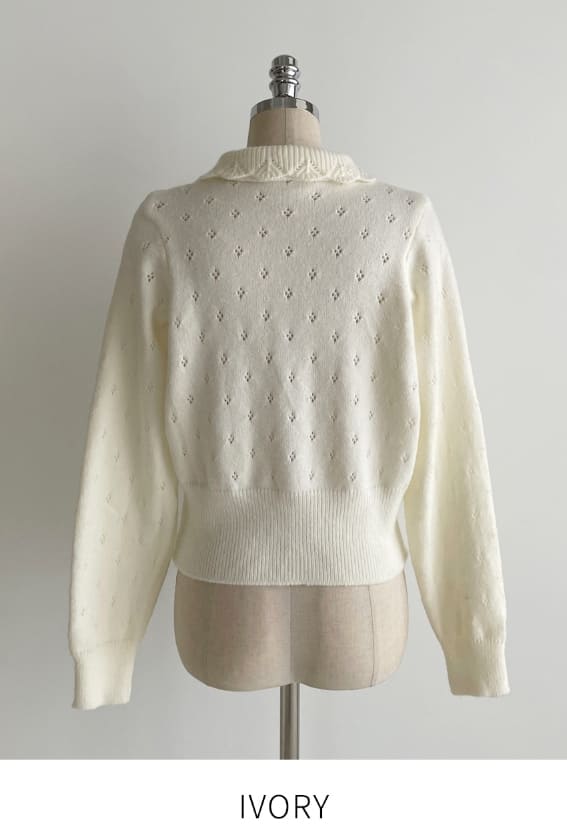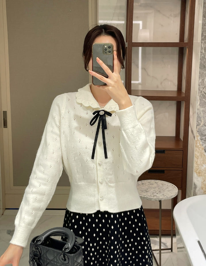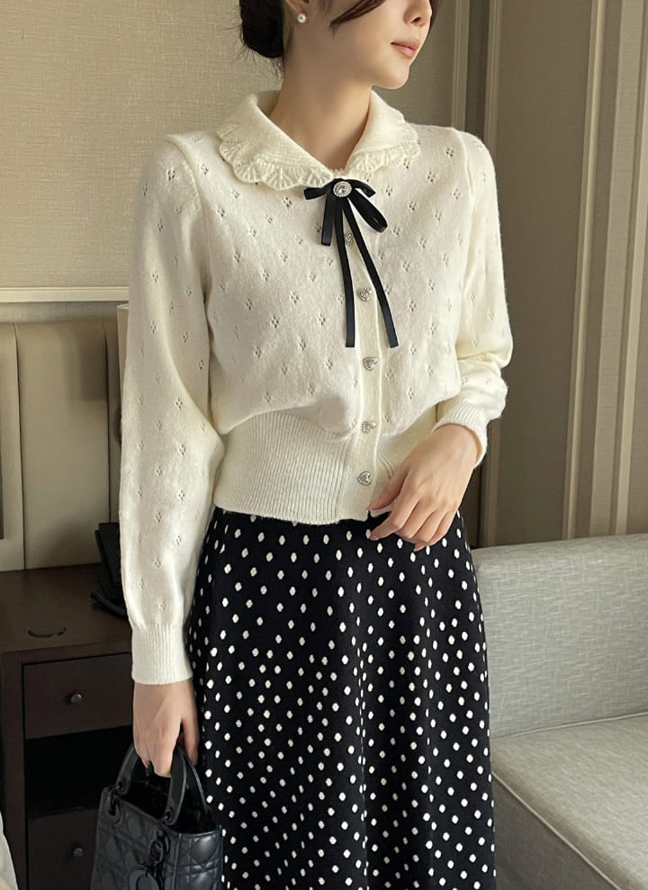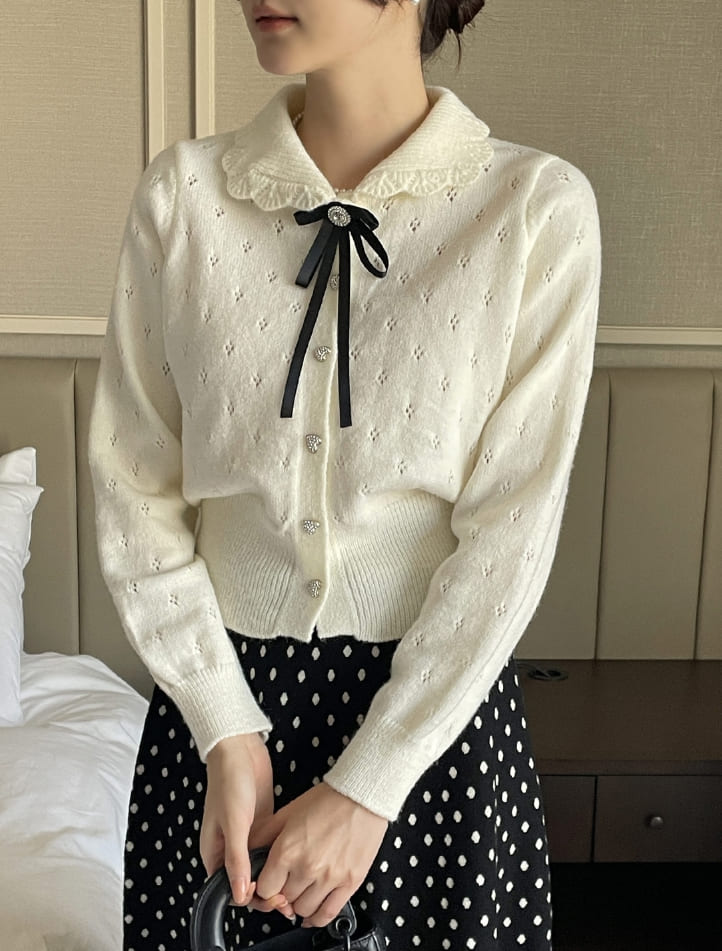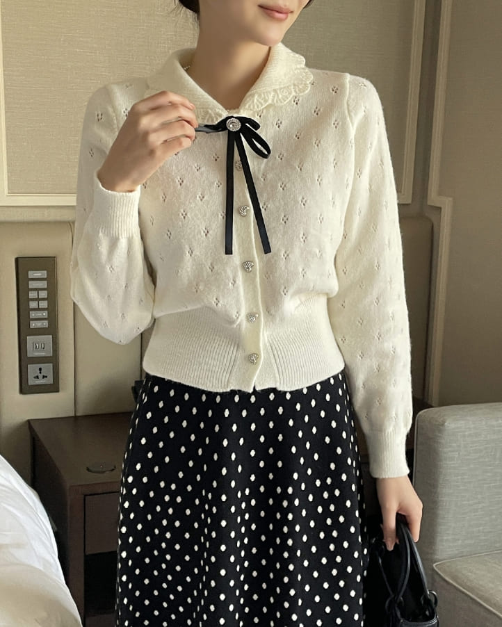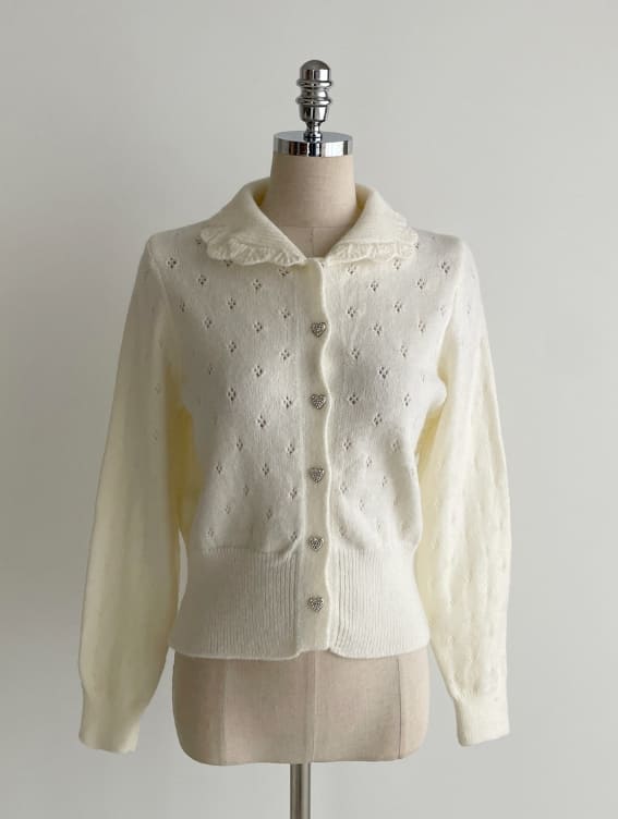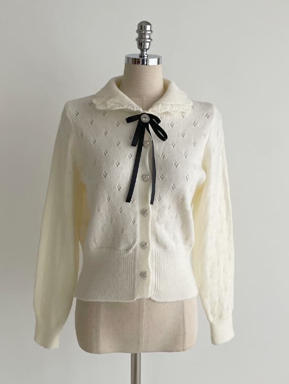 レジュパンチング襟付きハートボタンニットカーディガン(ブローチセット)
