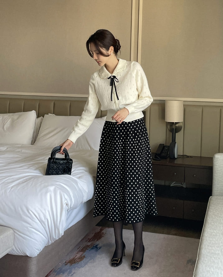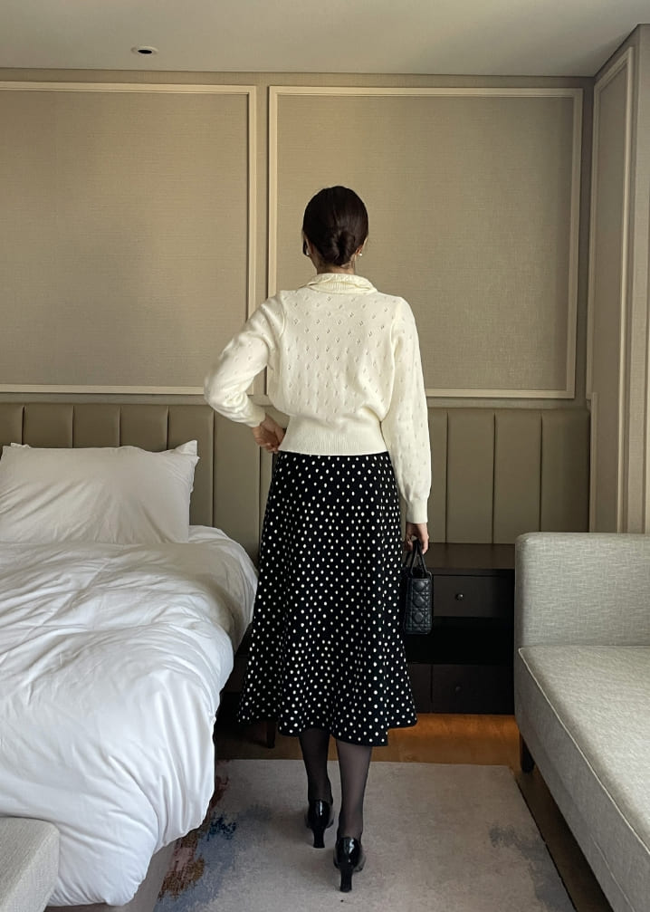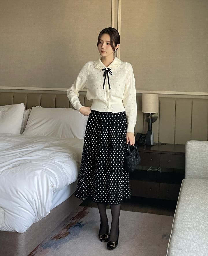 Reju Punching Collar Heart Button Knit Cardigan (Brooch Set)