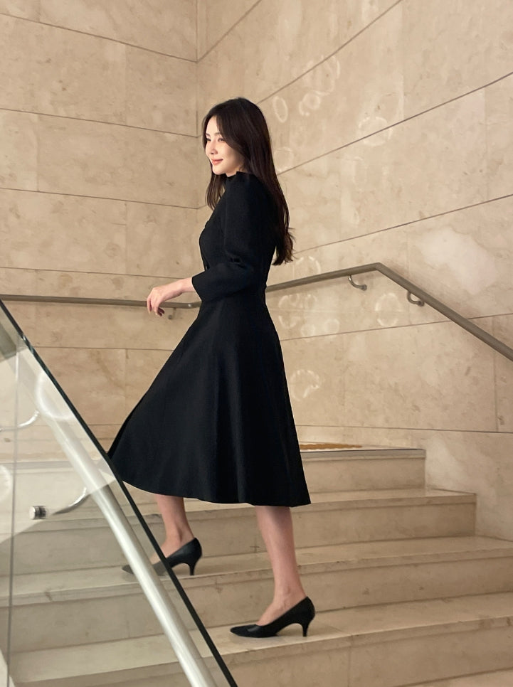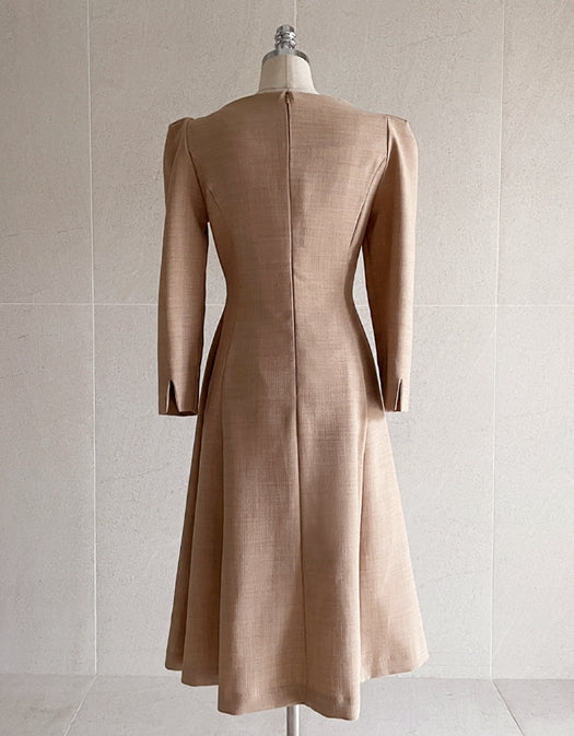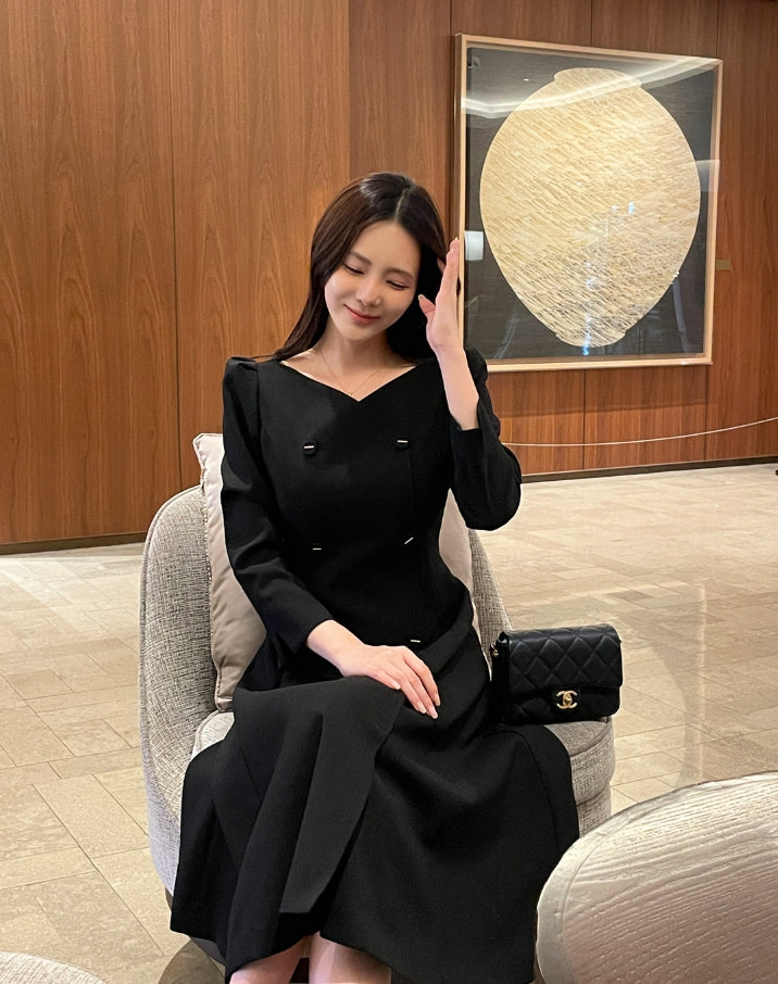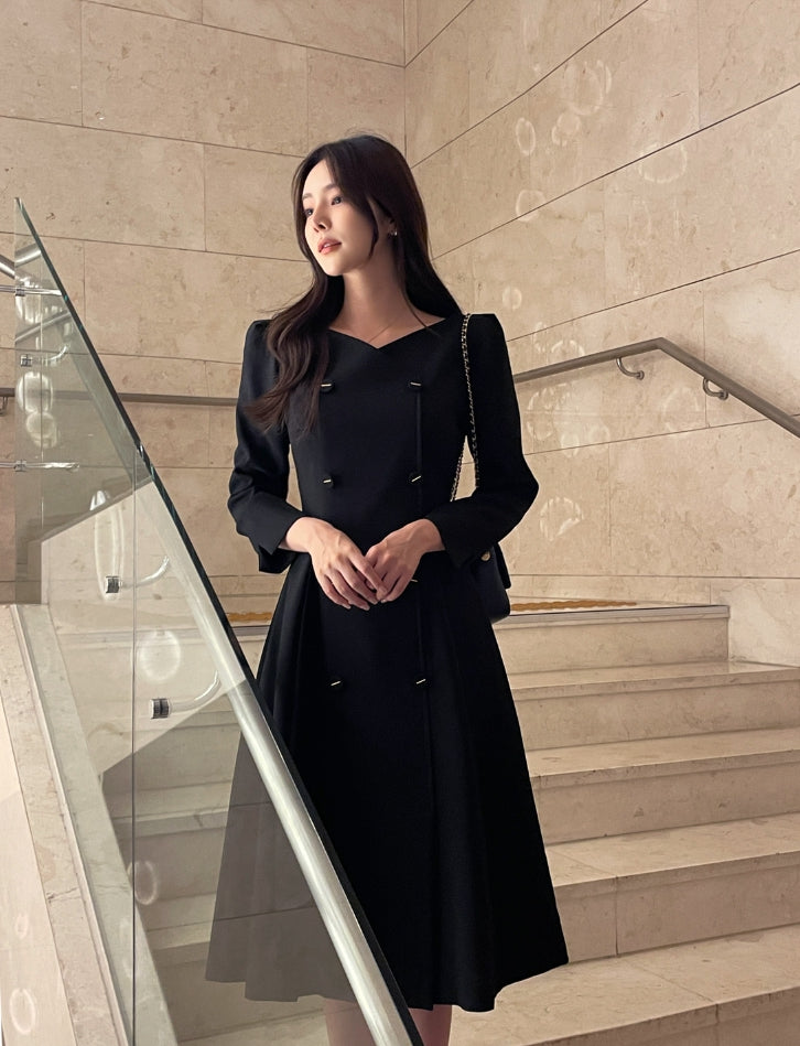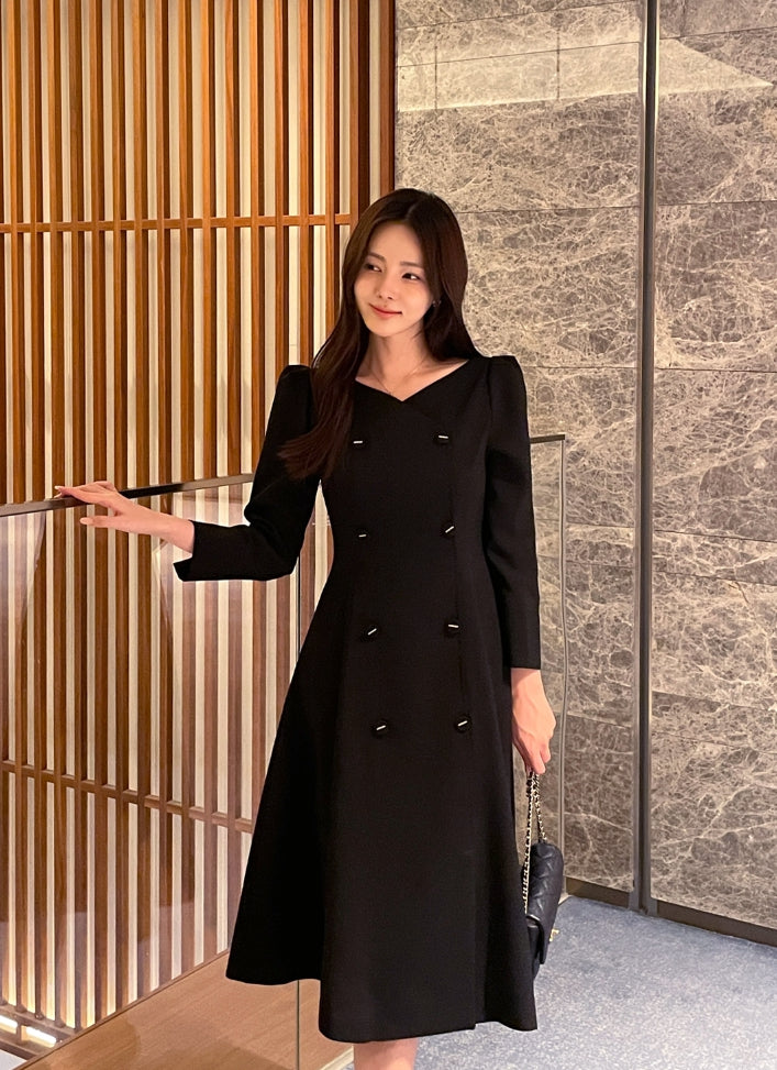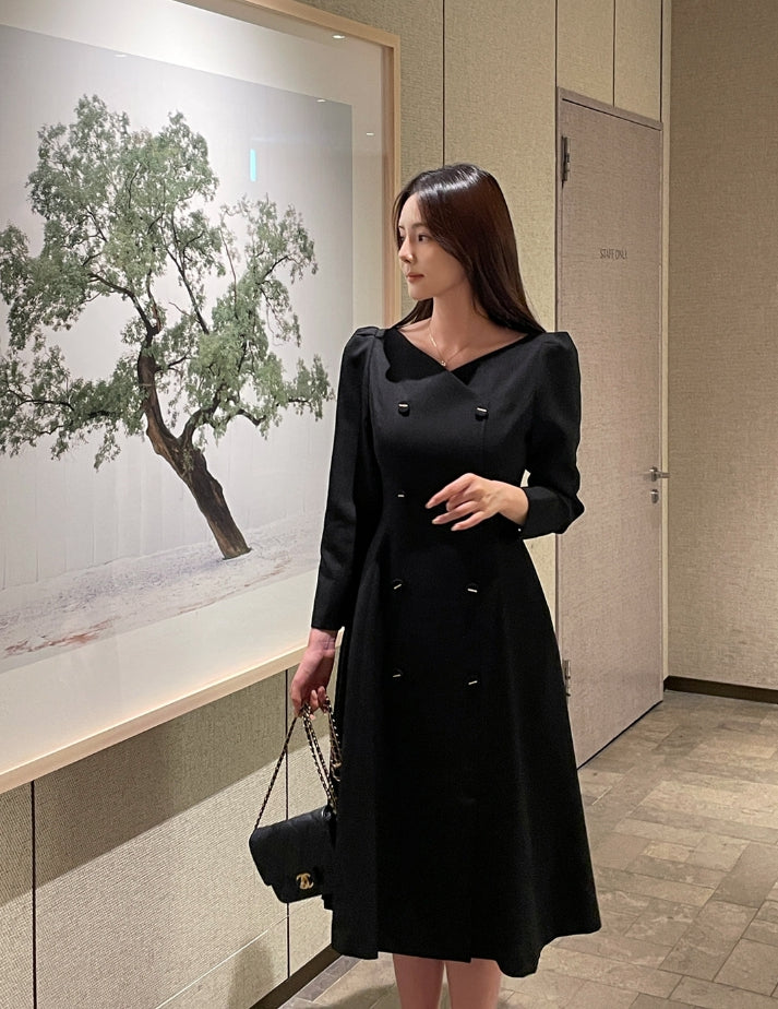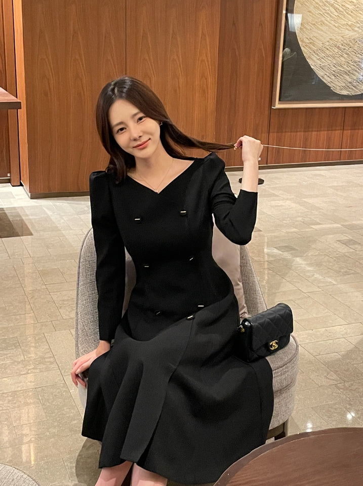 Romid Double Button Puff Tweed Flare One Piece