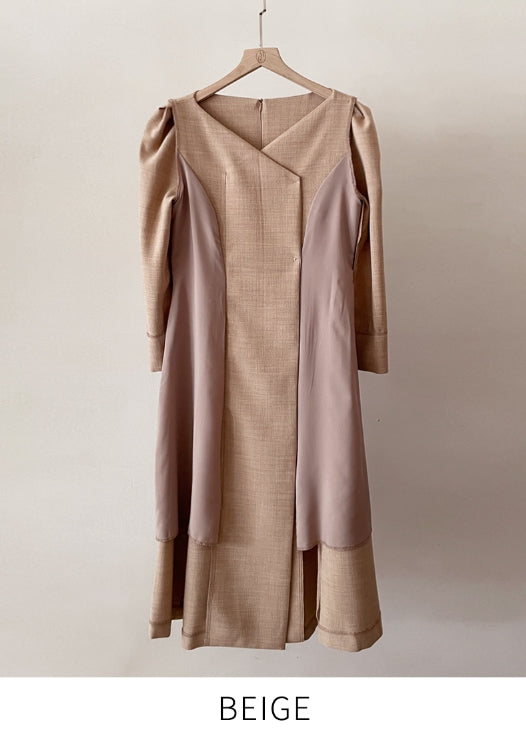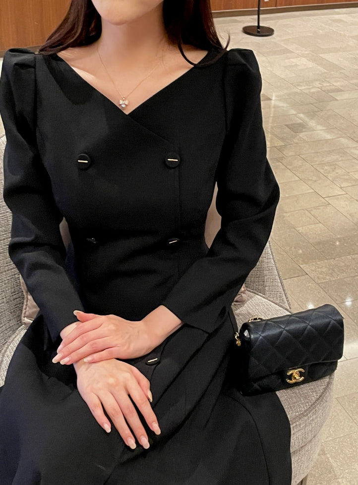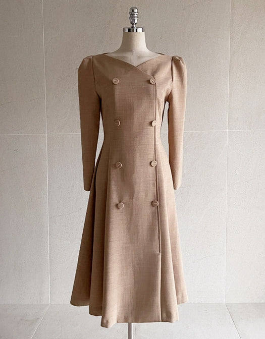 ロミドダブルボタンパフツイードフレアワンピース