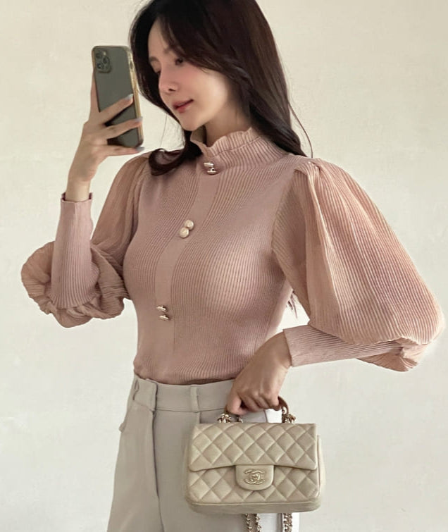 Ronia Frill Polar Pleated Puff Blouse Knit