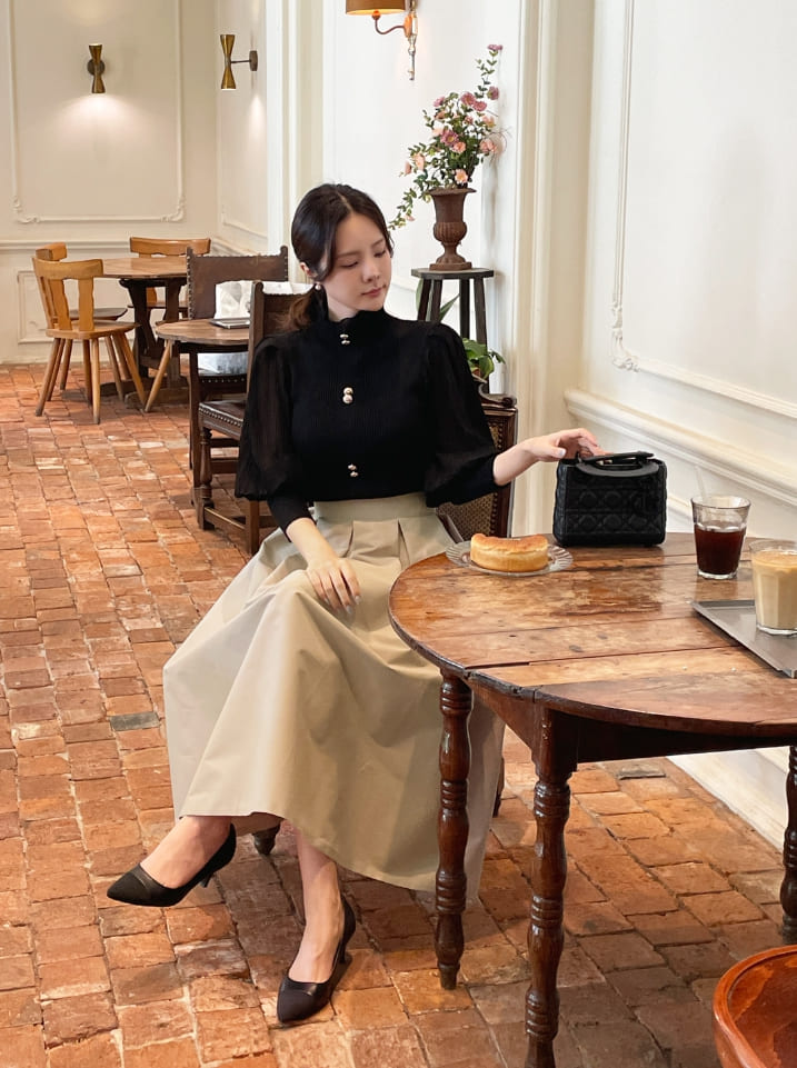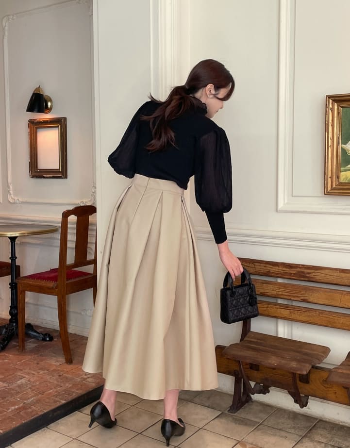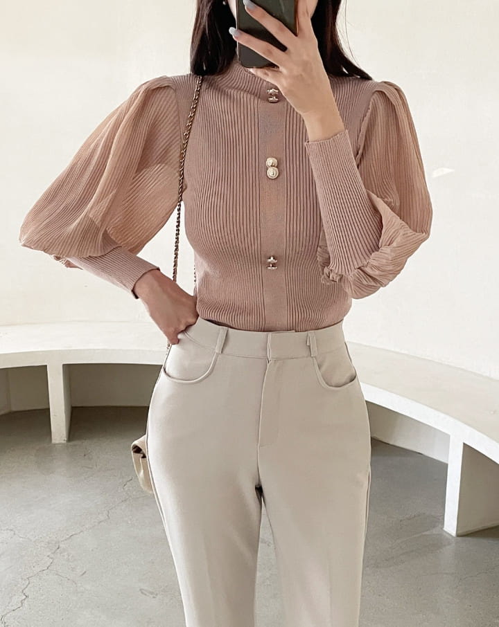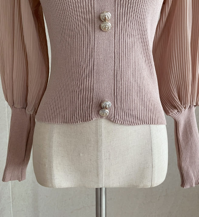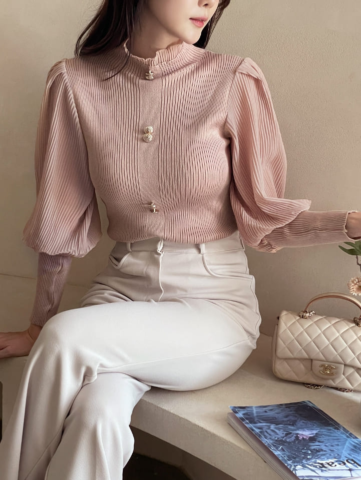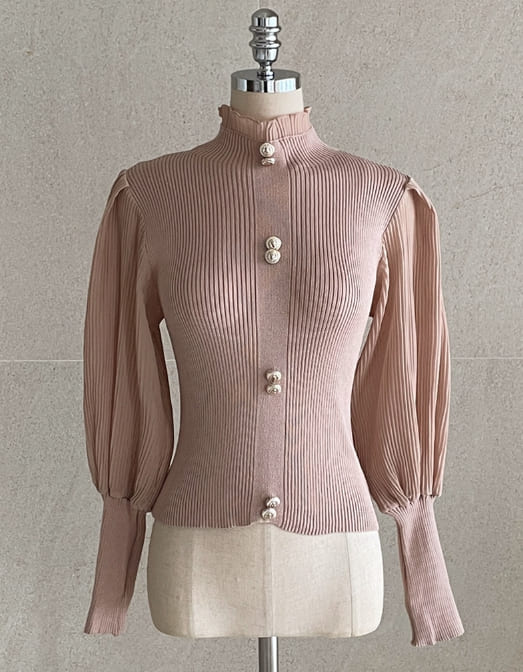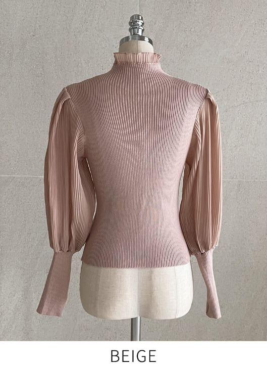 ロニアフリルポーラプリーツパフブラウスニット