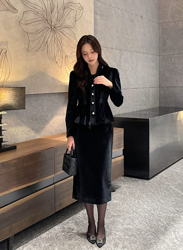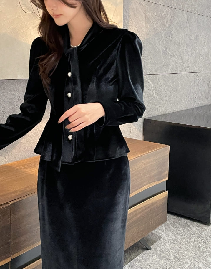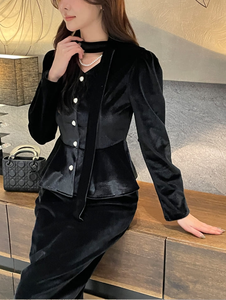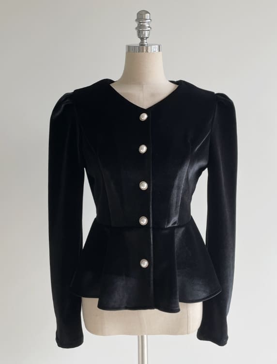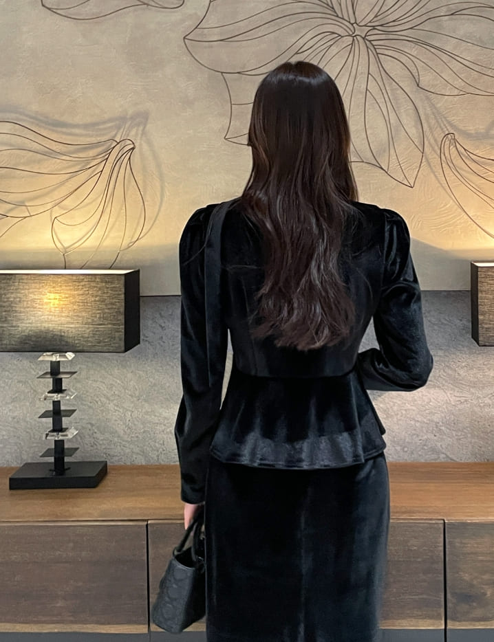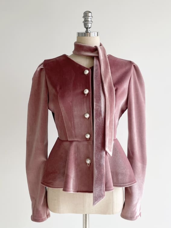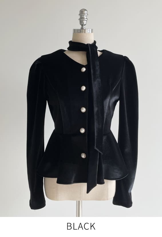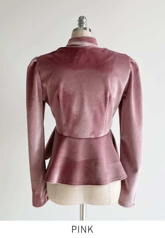 Roselle Peplum Tie Velvet Jacket Blouse