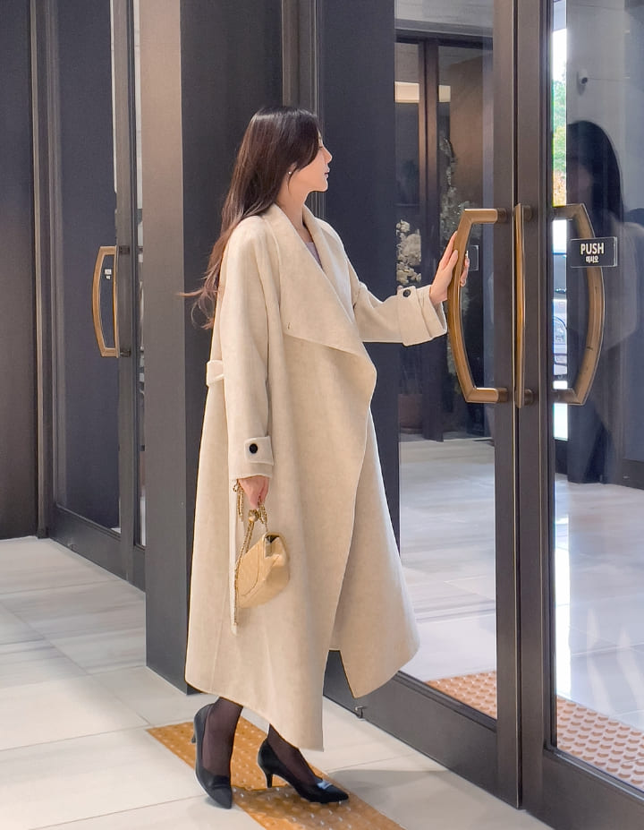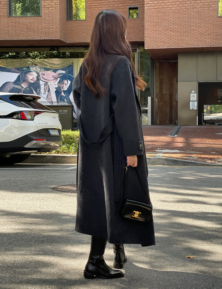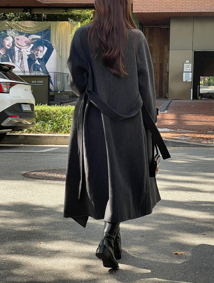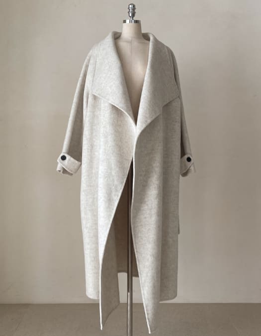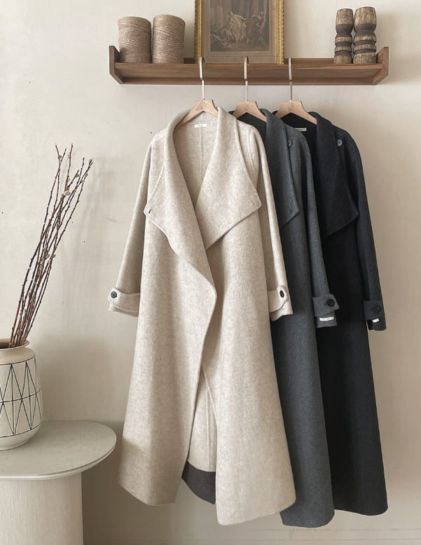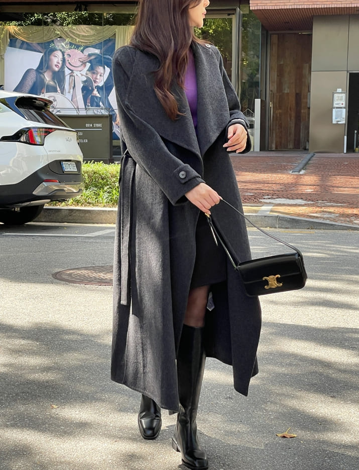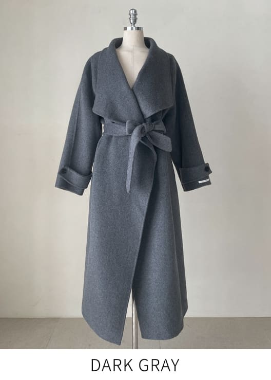 スコーンハイネックショール襟付きハンドメイドロングコート(ストラップセット)