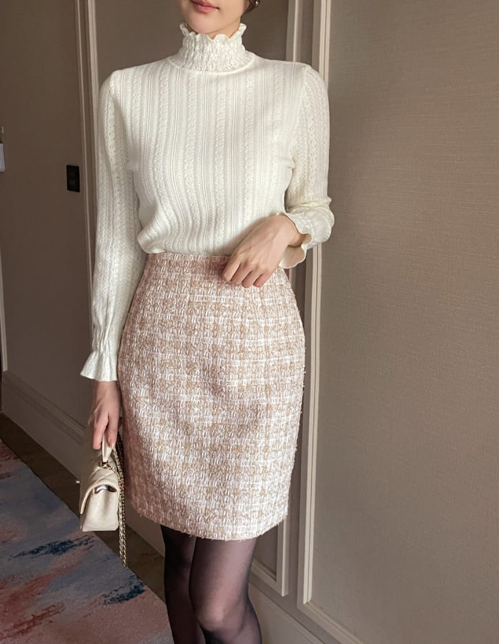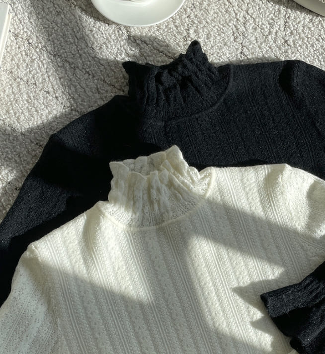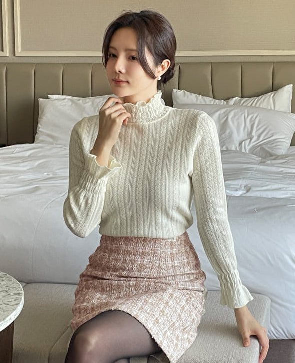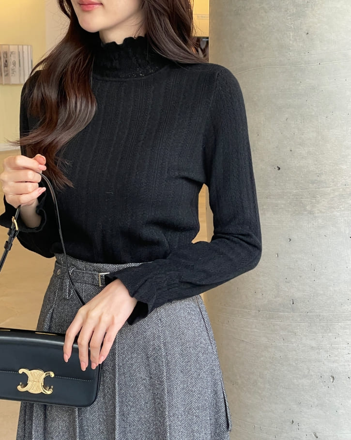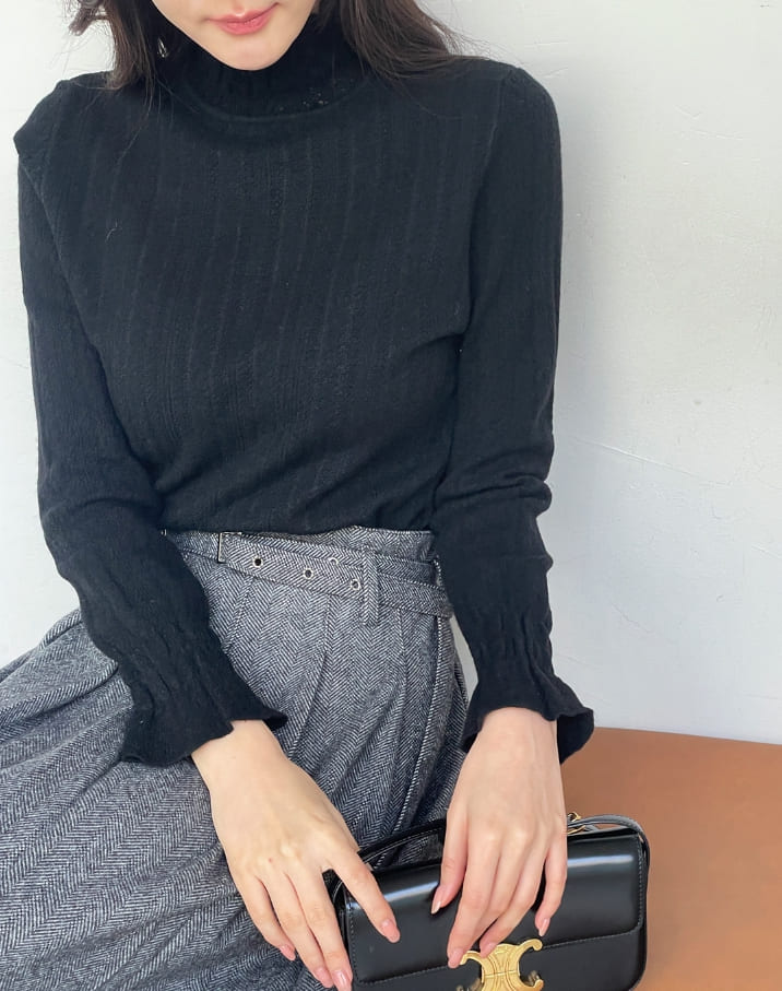 セカスモーク起毛レースポーラニット