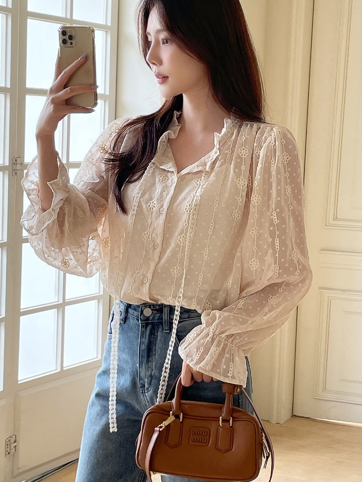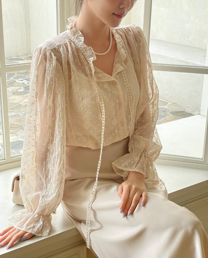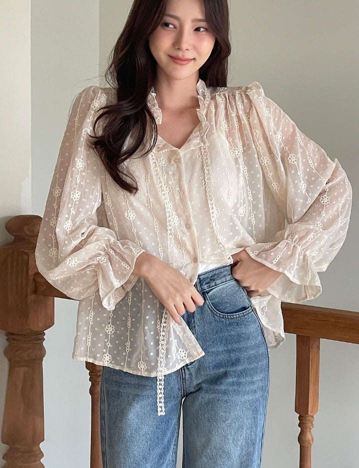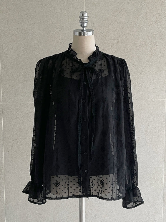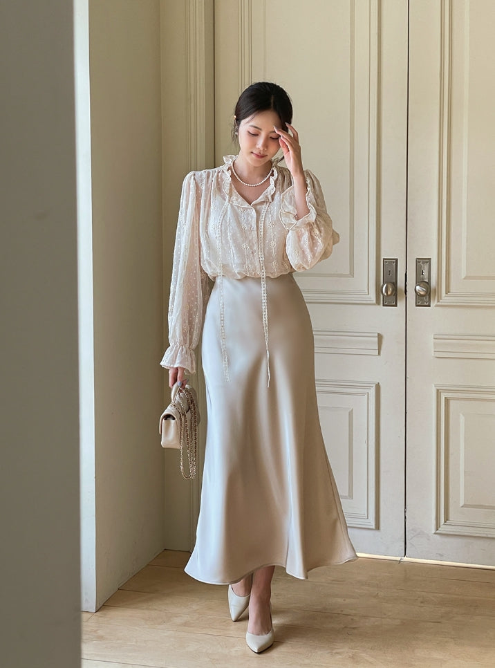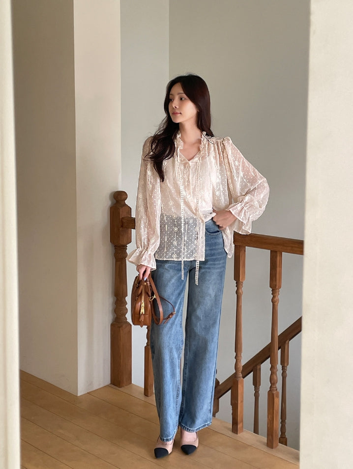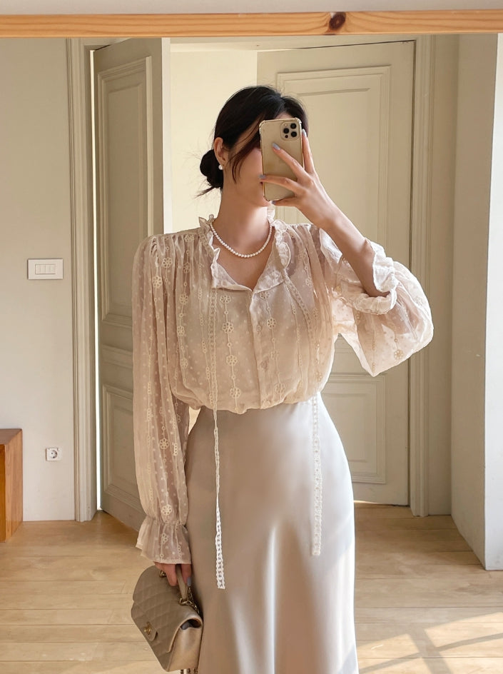 (Sleeveless Set) Shudin Lace Tie Puff Blouse