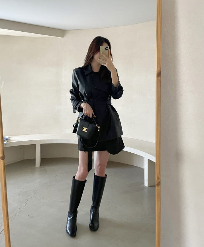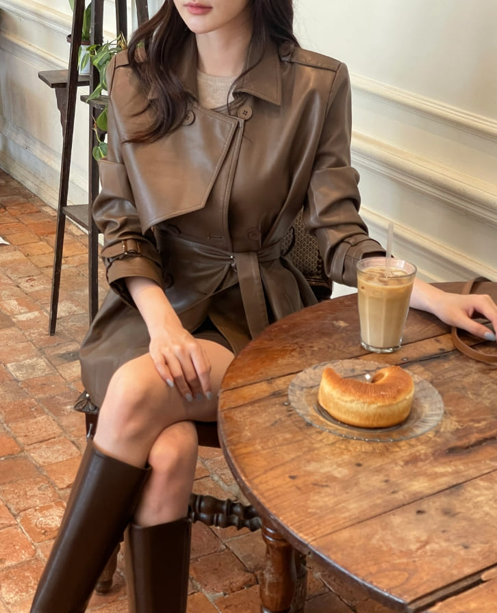 Suitman Double Trench Half Leather Jacket (Belt Set)