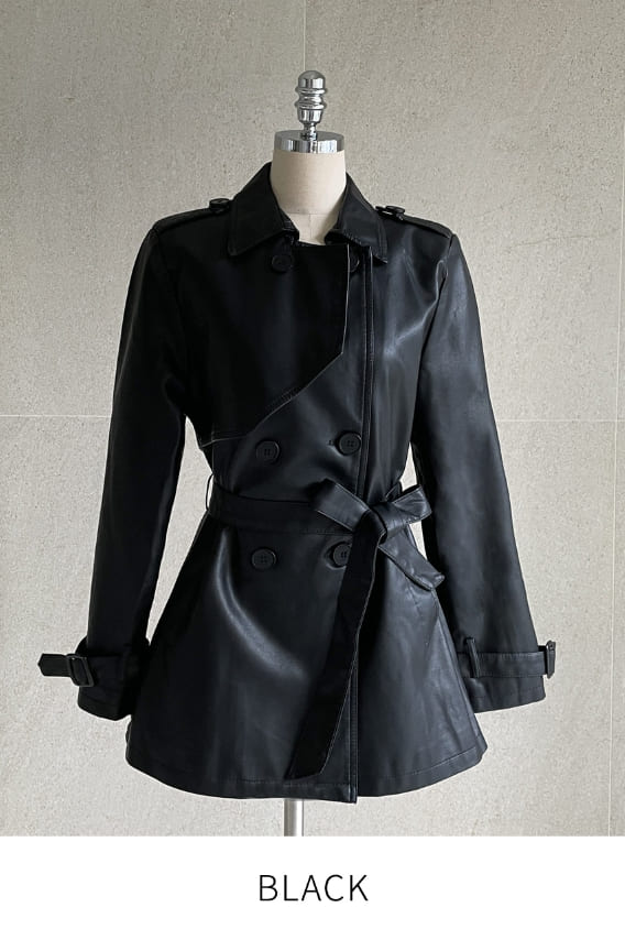 スーツマンダブルトレンチハーフレザージャケット(ベルトセット)