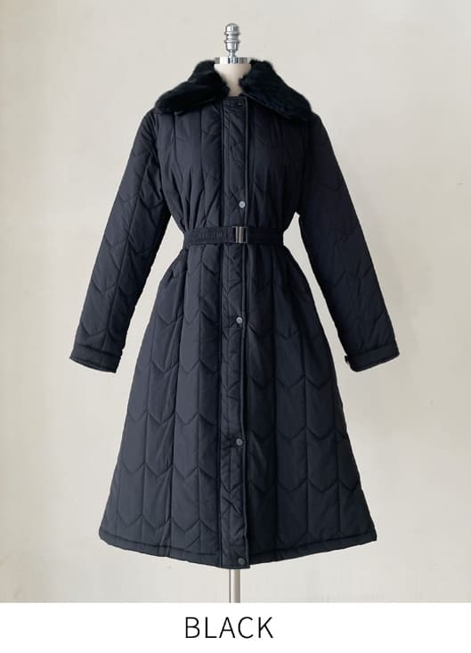 ベロラビットファーカラーロングペディングコート(ベルトセット)