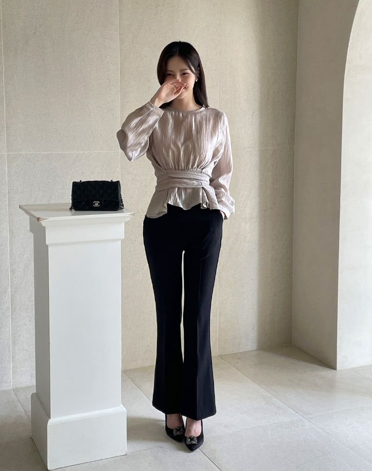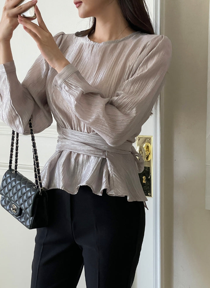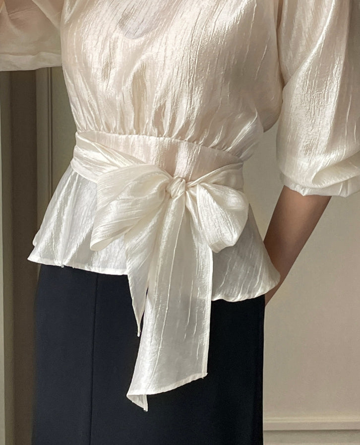 ビオラストラップサテンラップブラウス