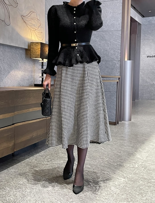 ウィテルハウンドチェックバックバンディングフレアスカート