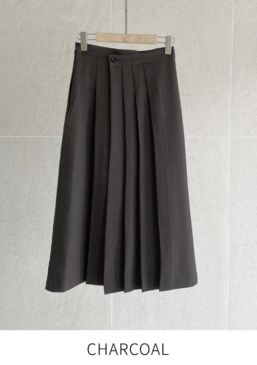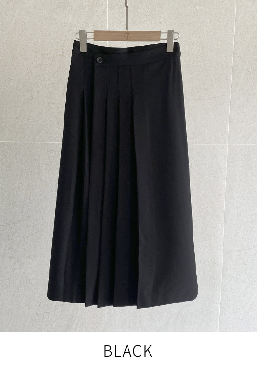 Yuloy Unbalanced Wrap Pleated Banding Long Skirt