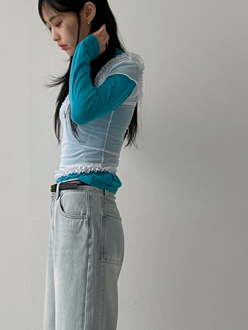 -169cm / 51kg / top 55(S) / bottom 27 / shoes 240mm / Aqua Blue