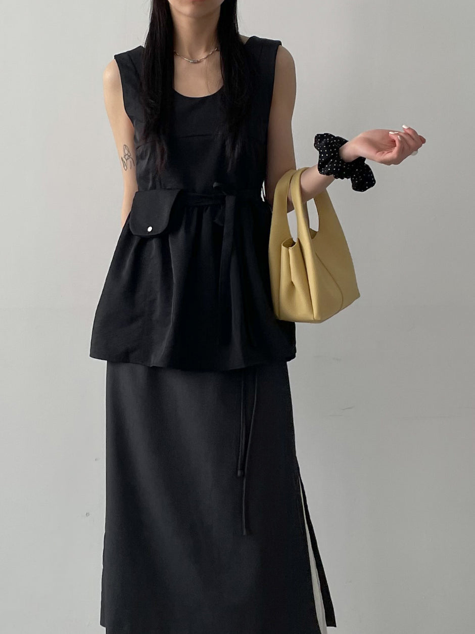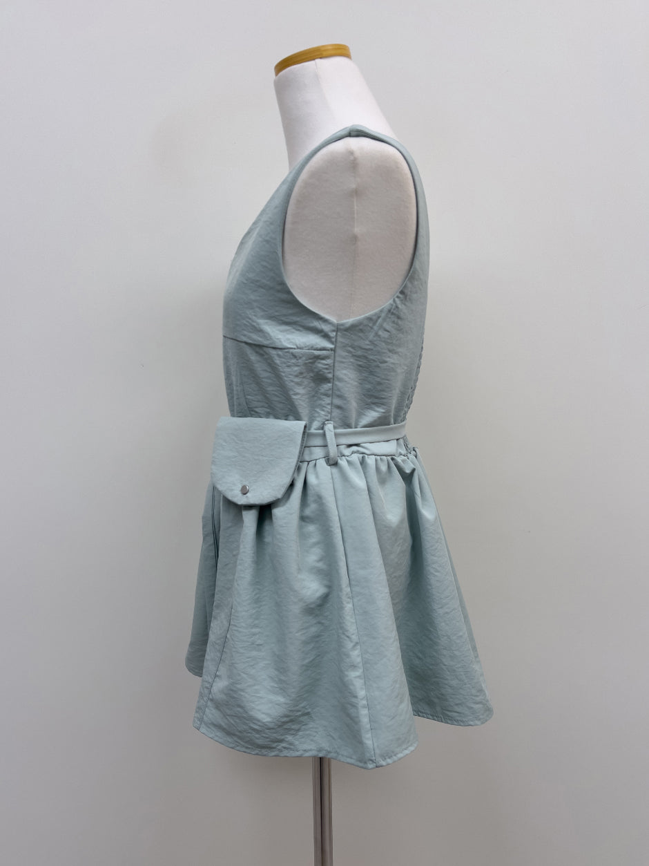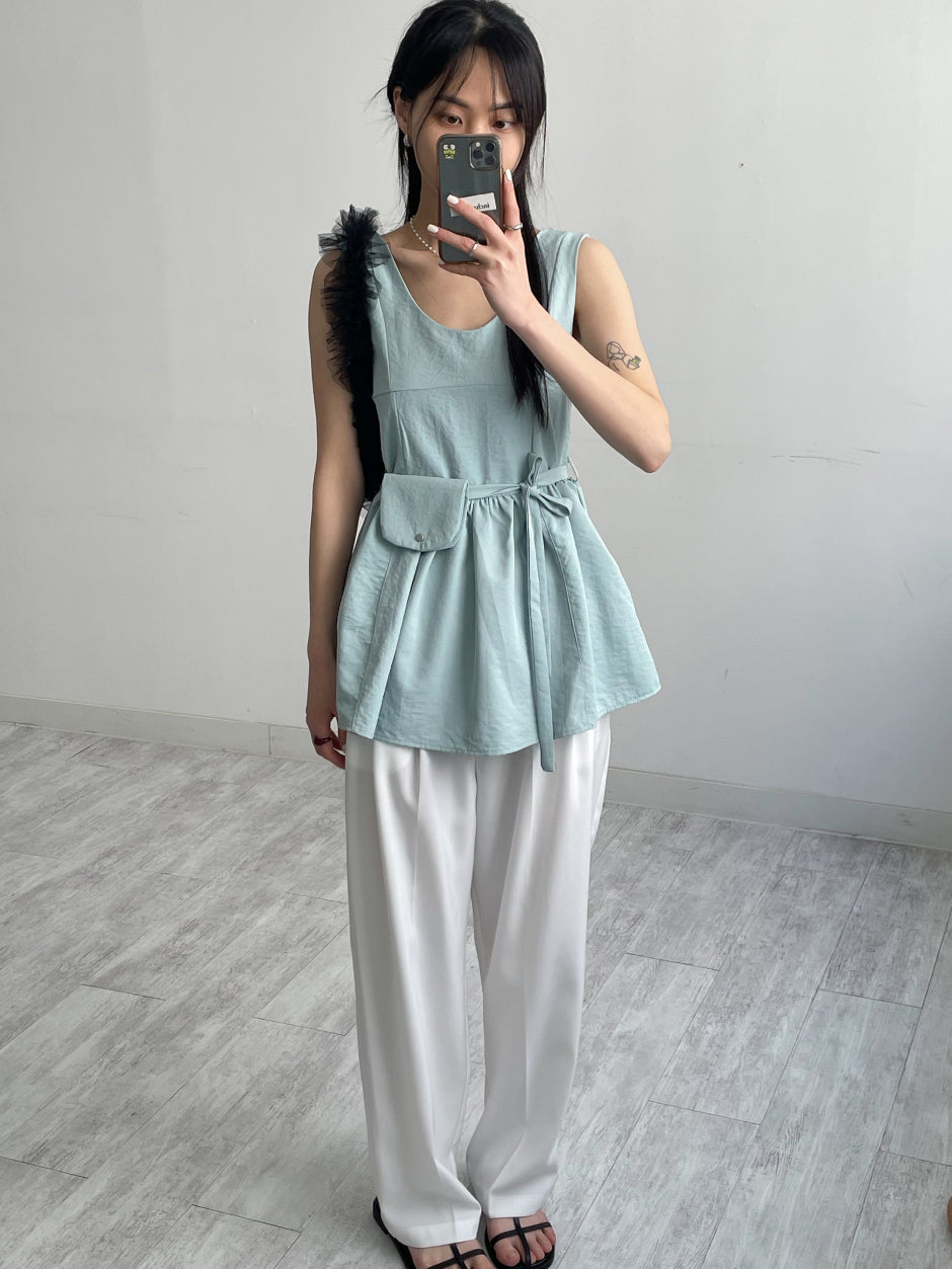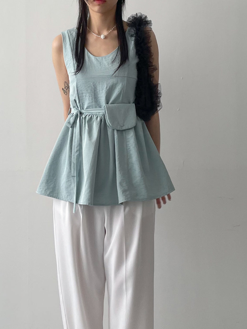 [Belt Bag SET] Smoke Sleeveless Frill Blouse