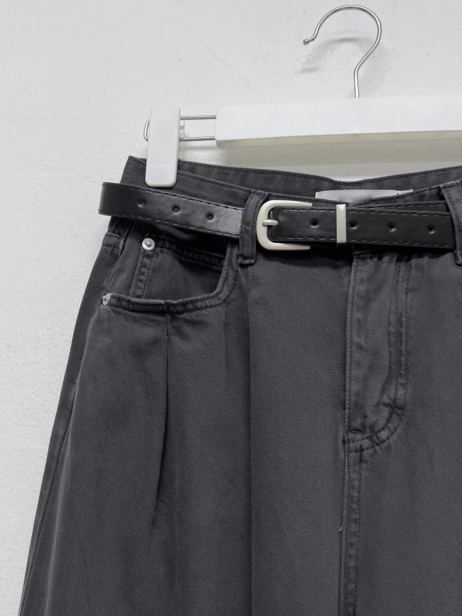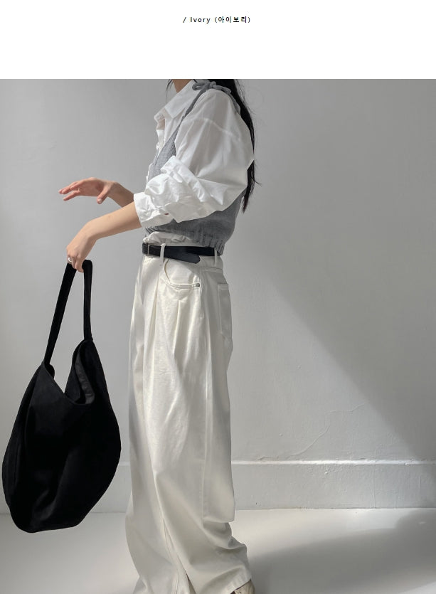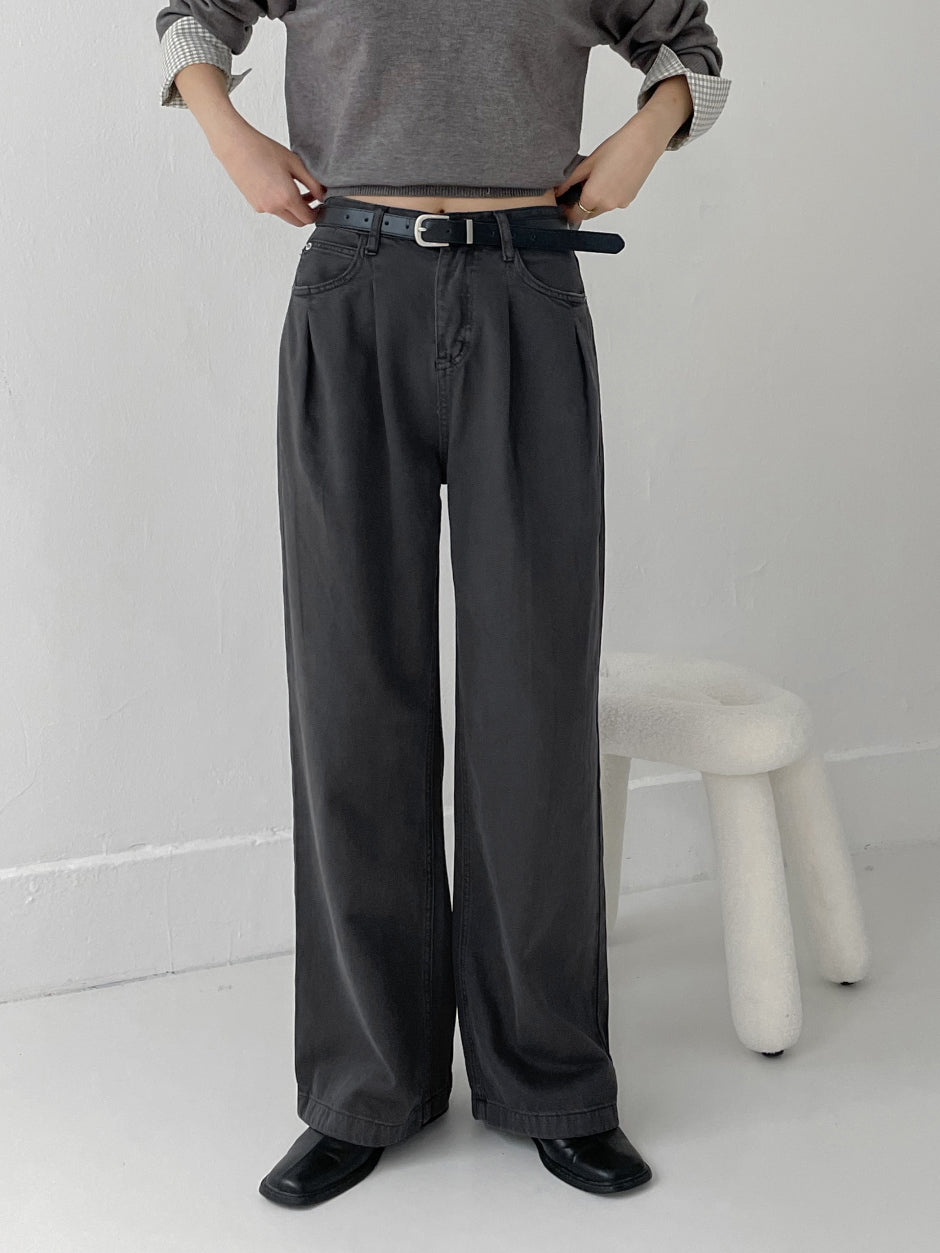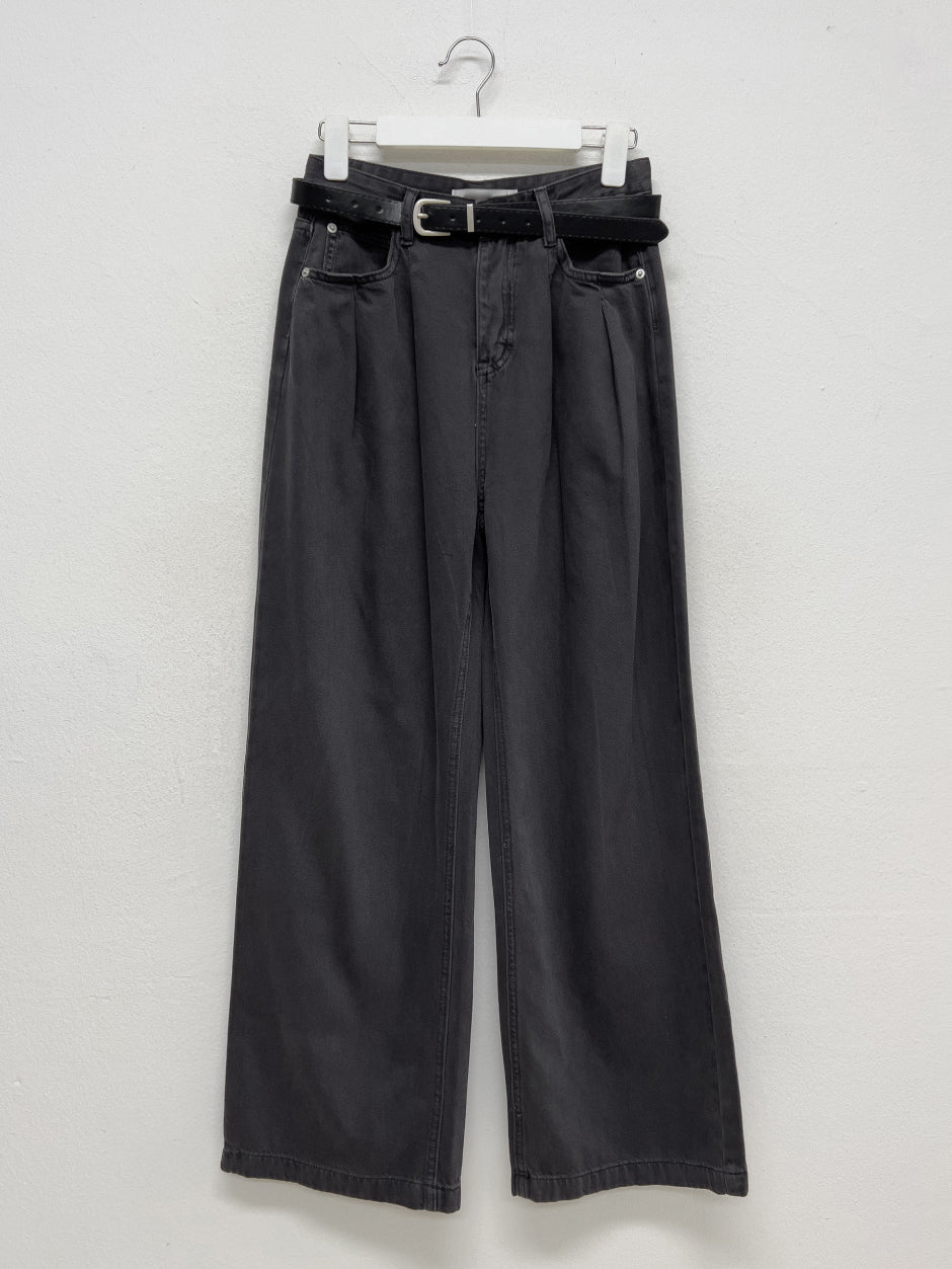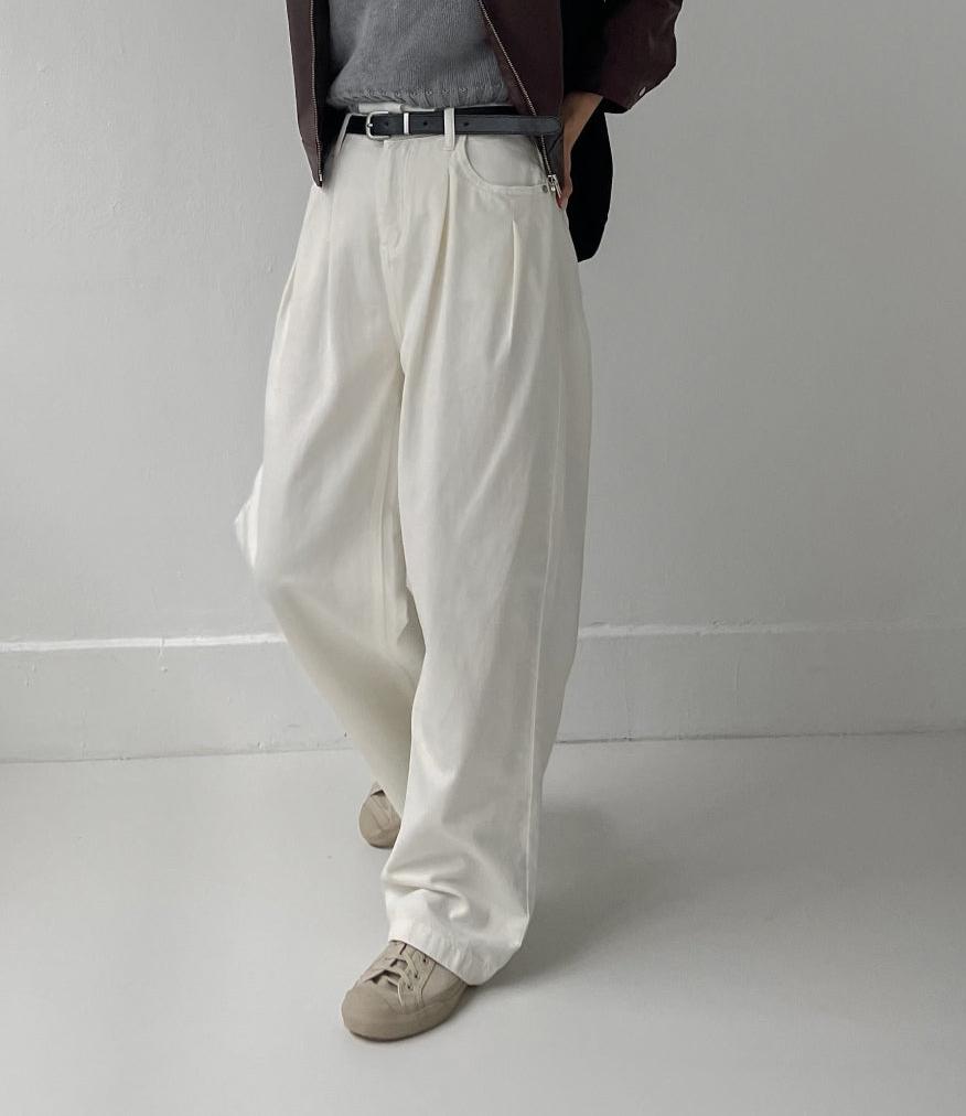 [Belt SET] Stern Pintuck Cotton Wide Pants