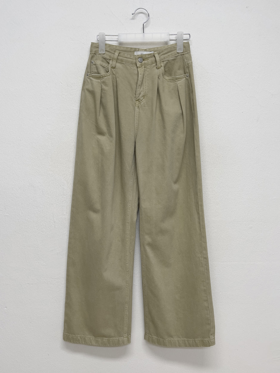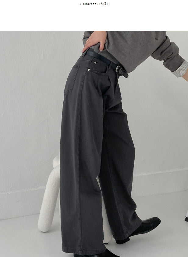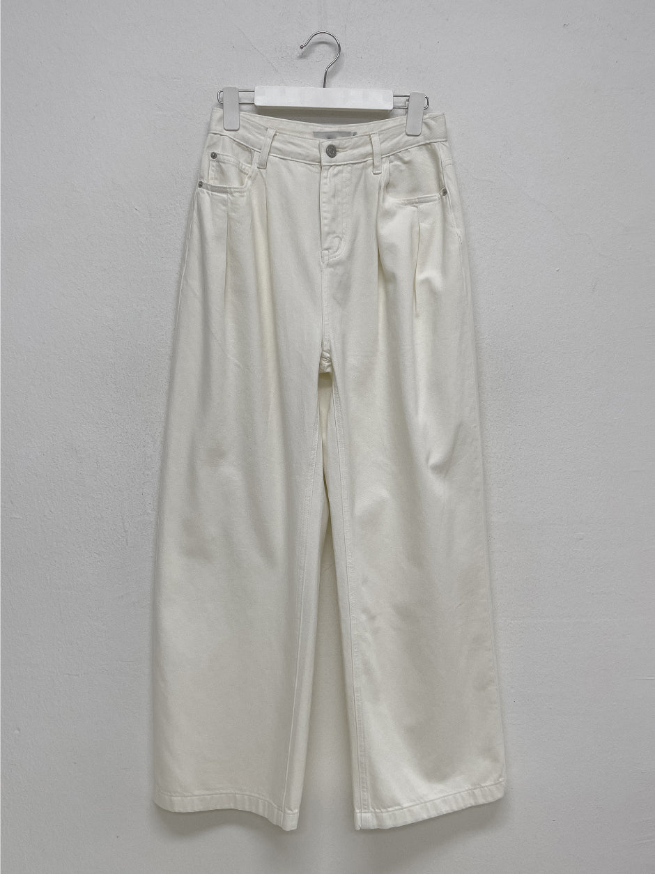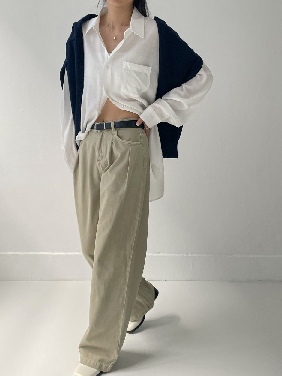 [Belt SET] Stern Pintuck Cotton Wide Pants