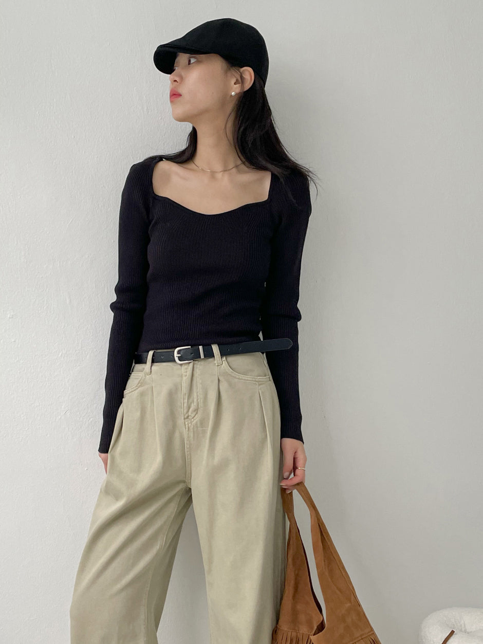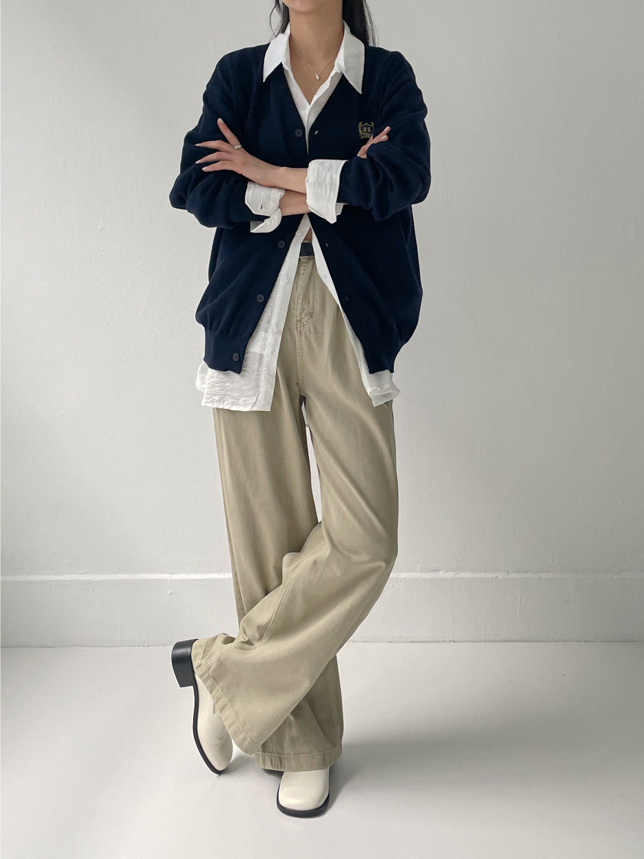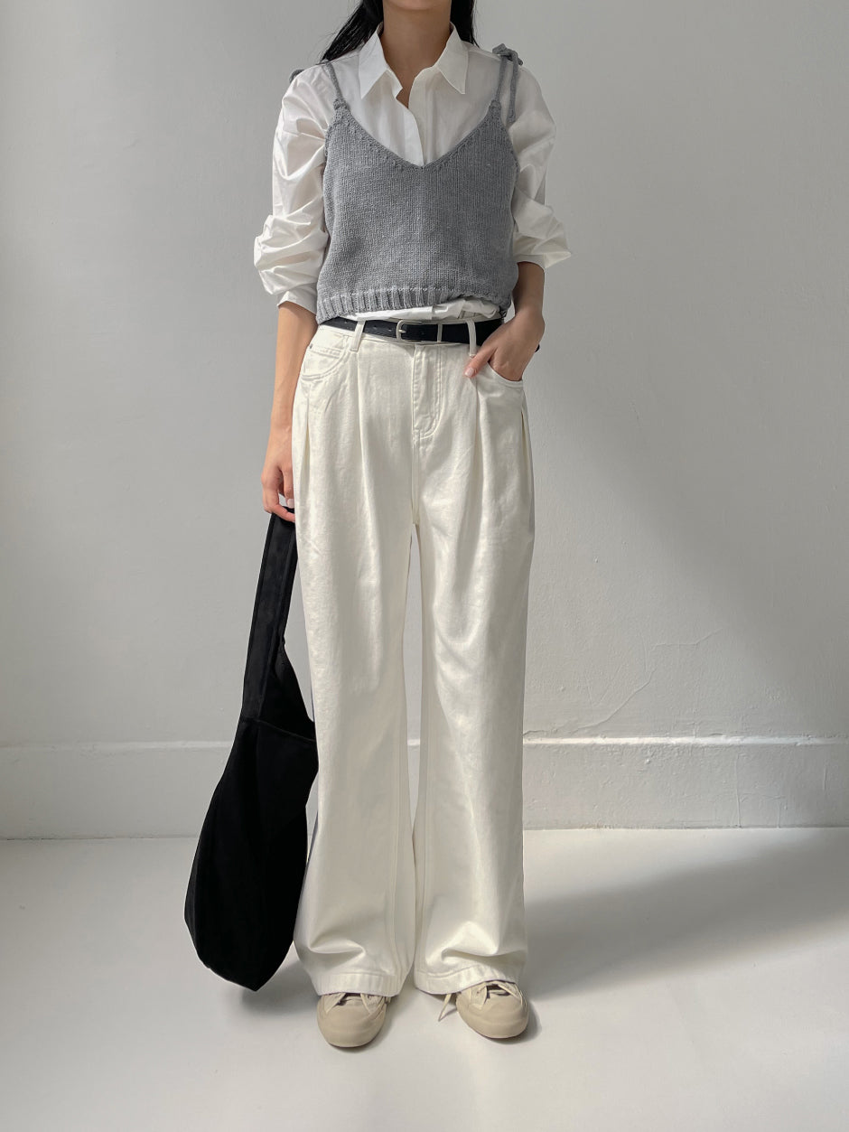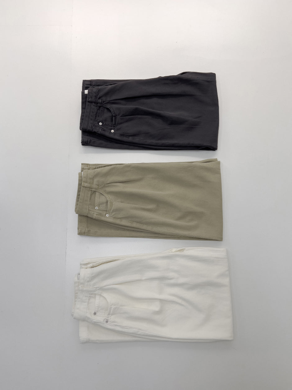 [Belt SET] Stern Pintuck Cotton Wide Pants