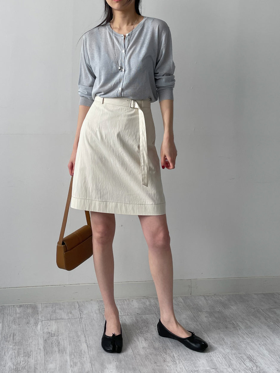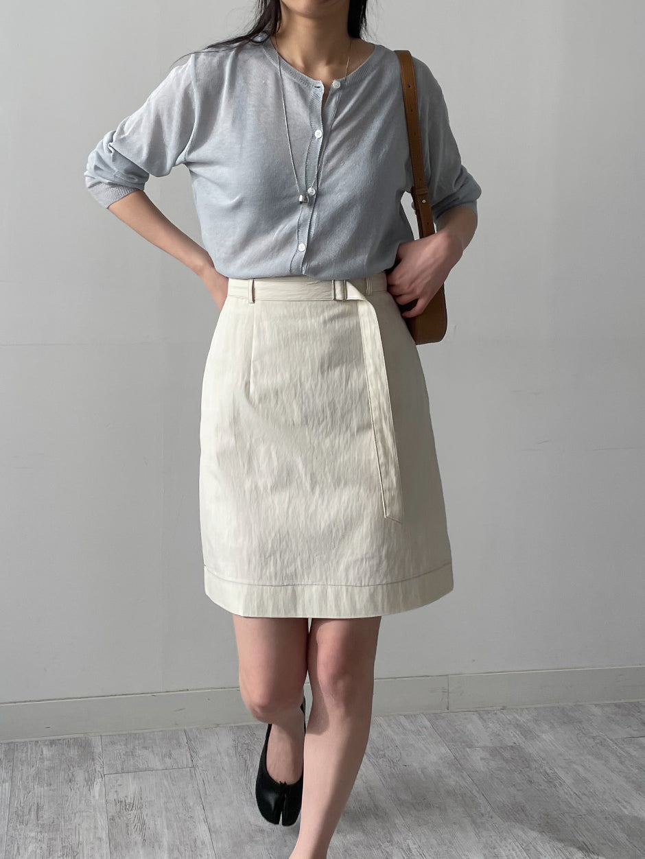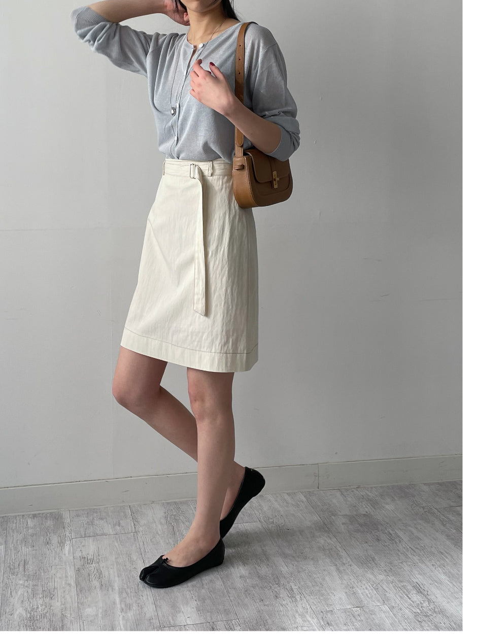 [ベルトセット]ステッチナイロンミディスカート