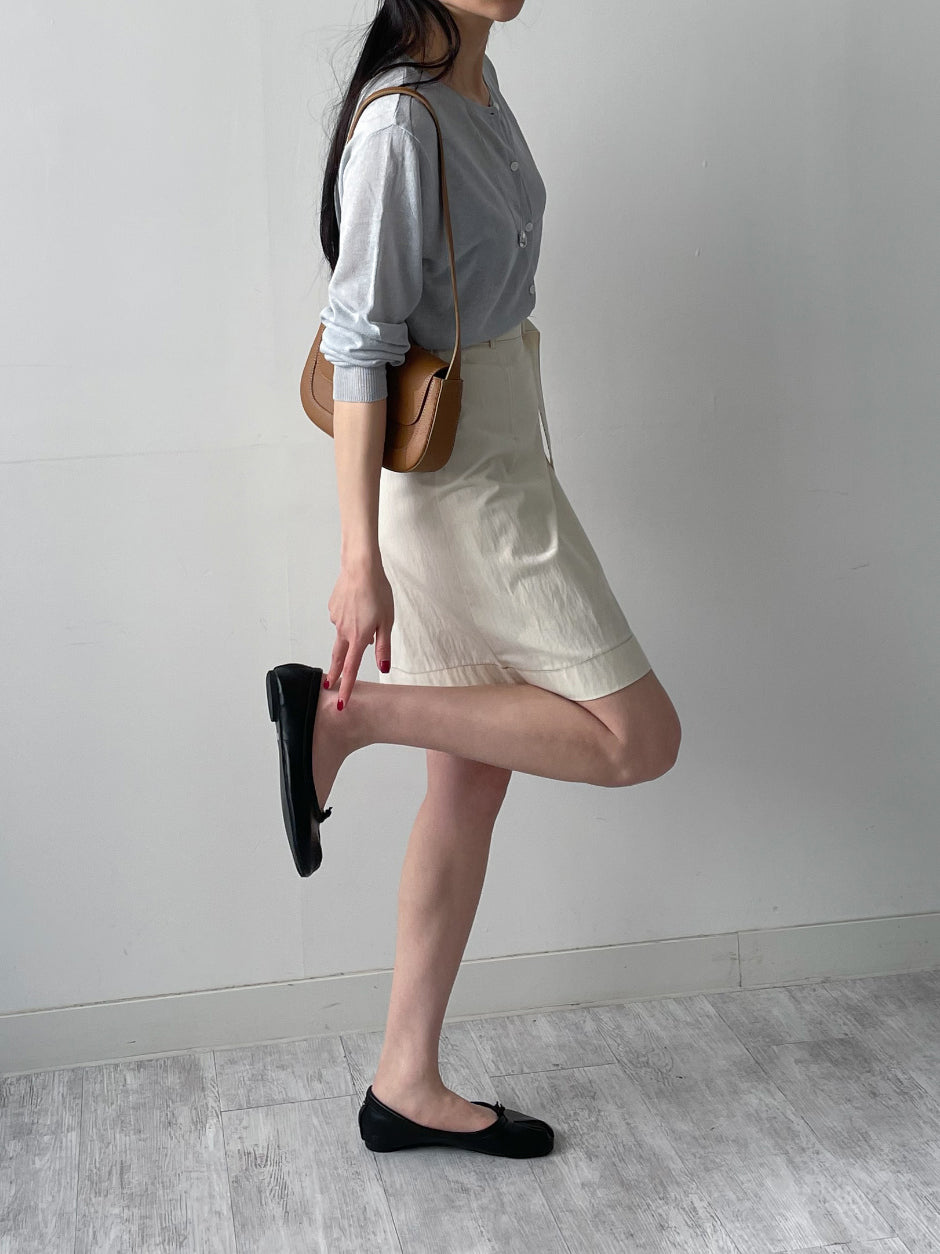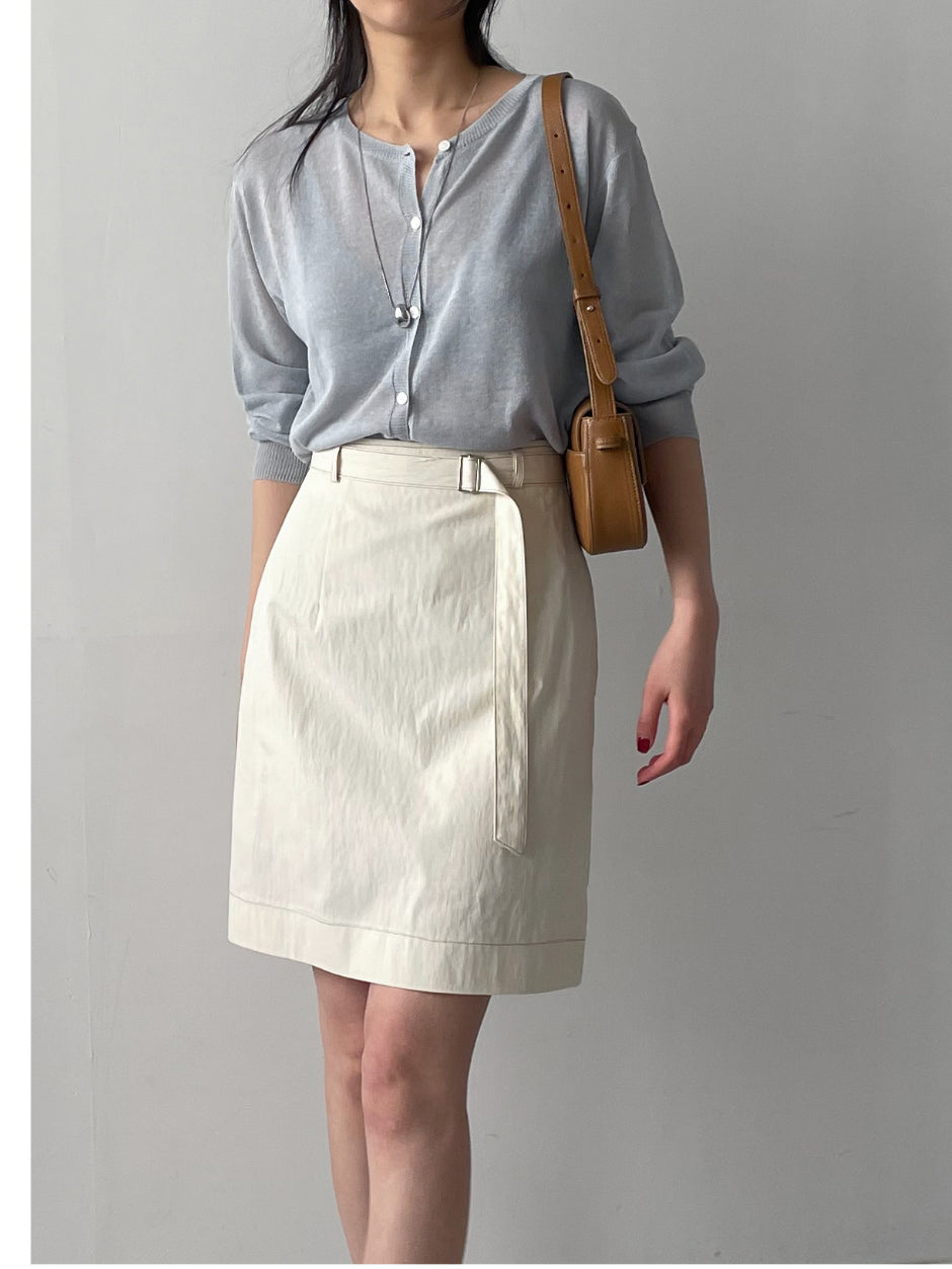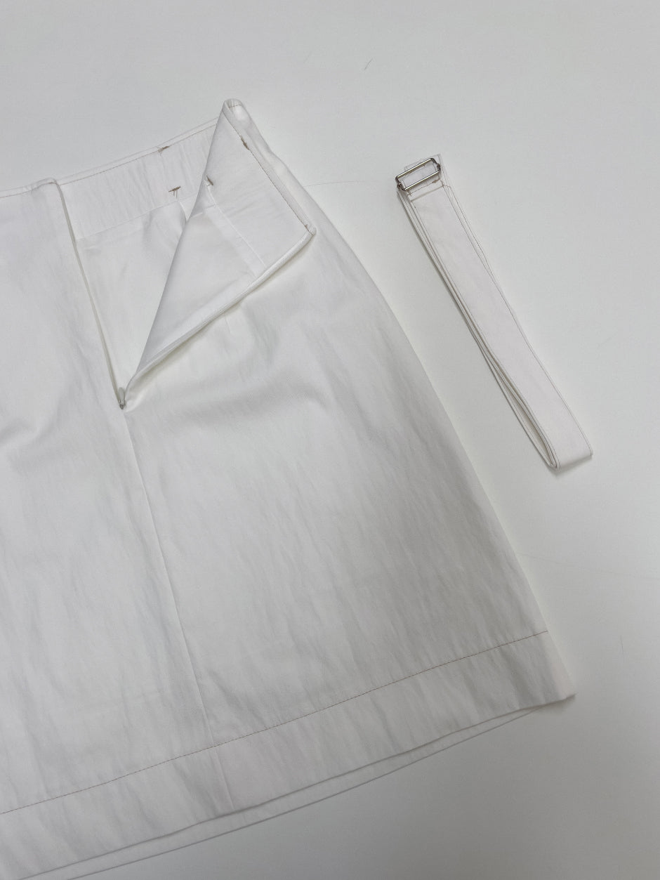 [ベルトセット]ステッチナイロンミディスカート