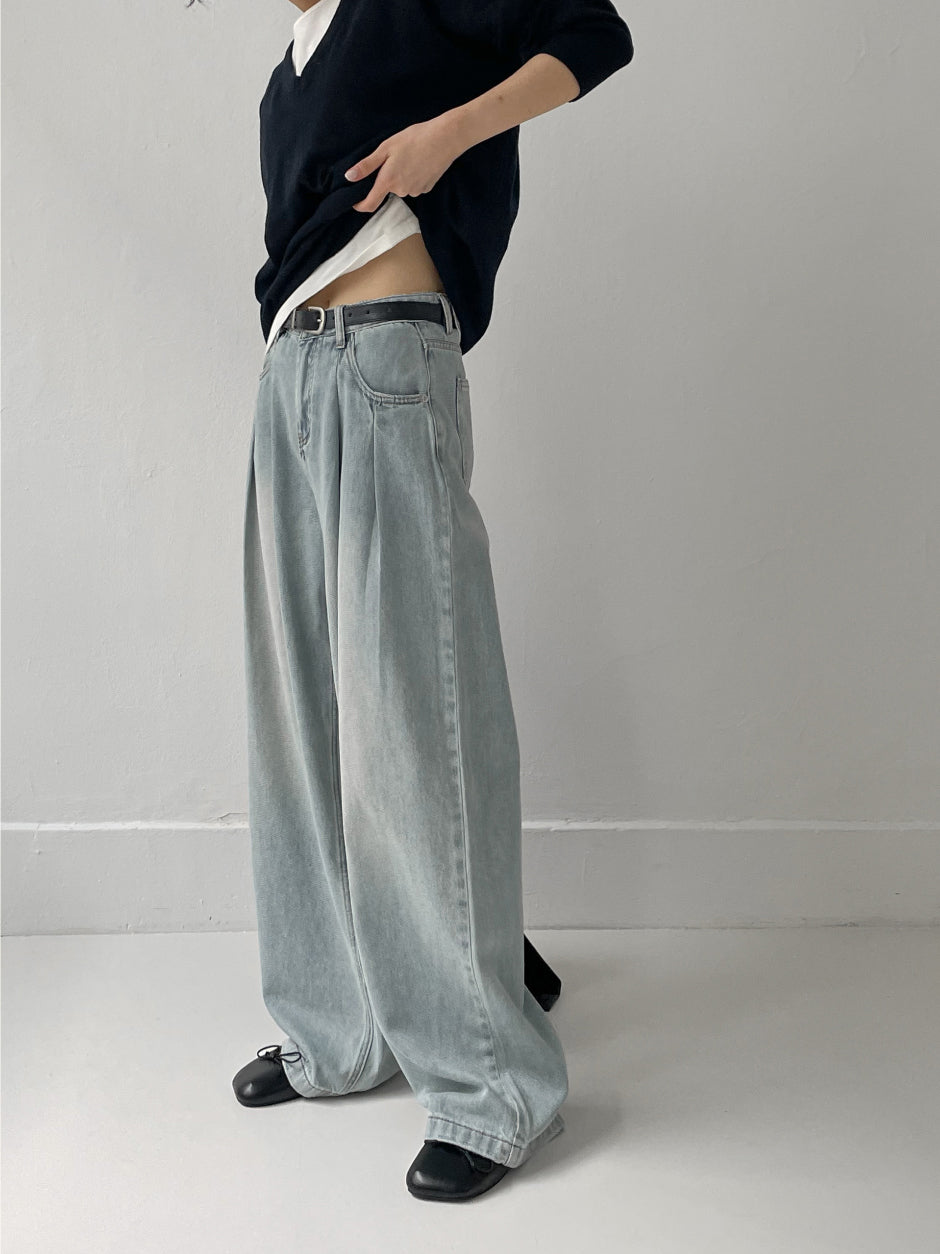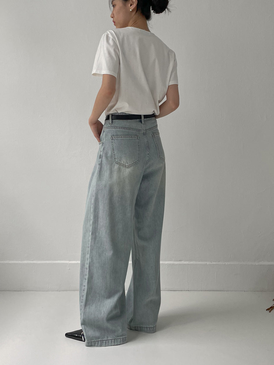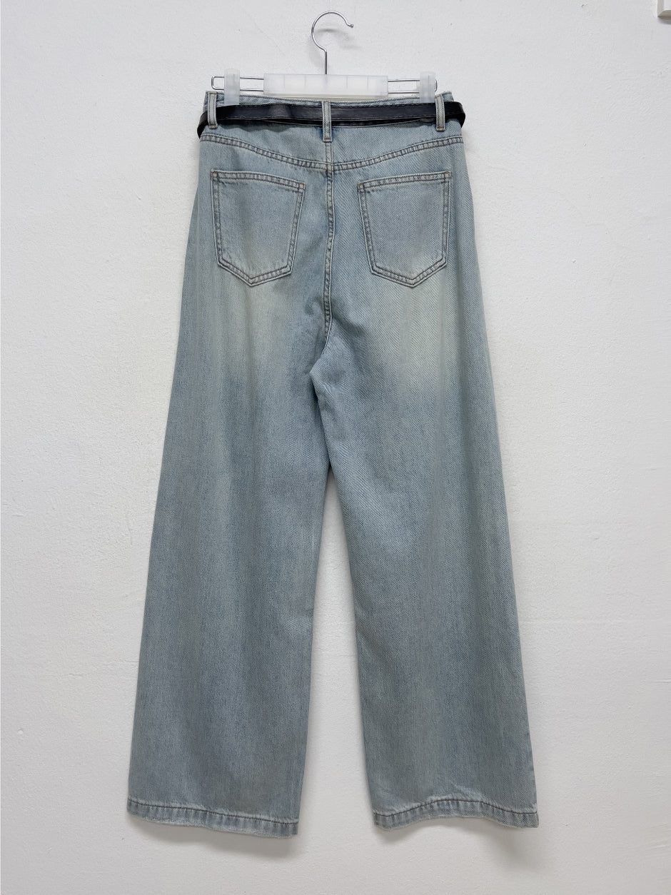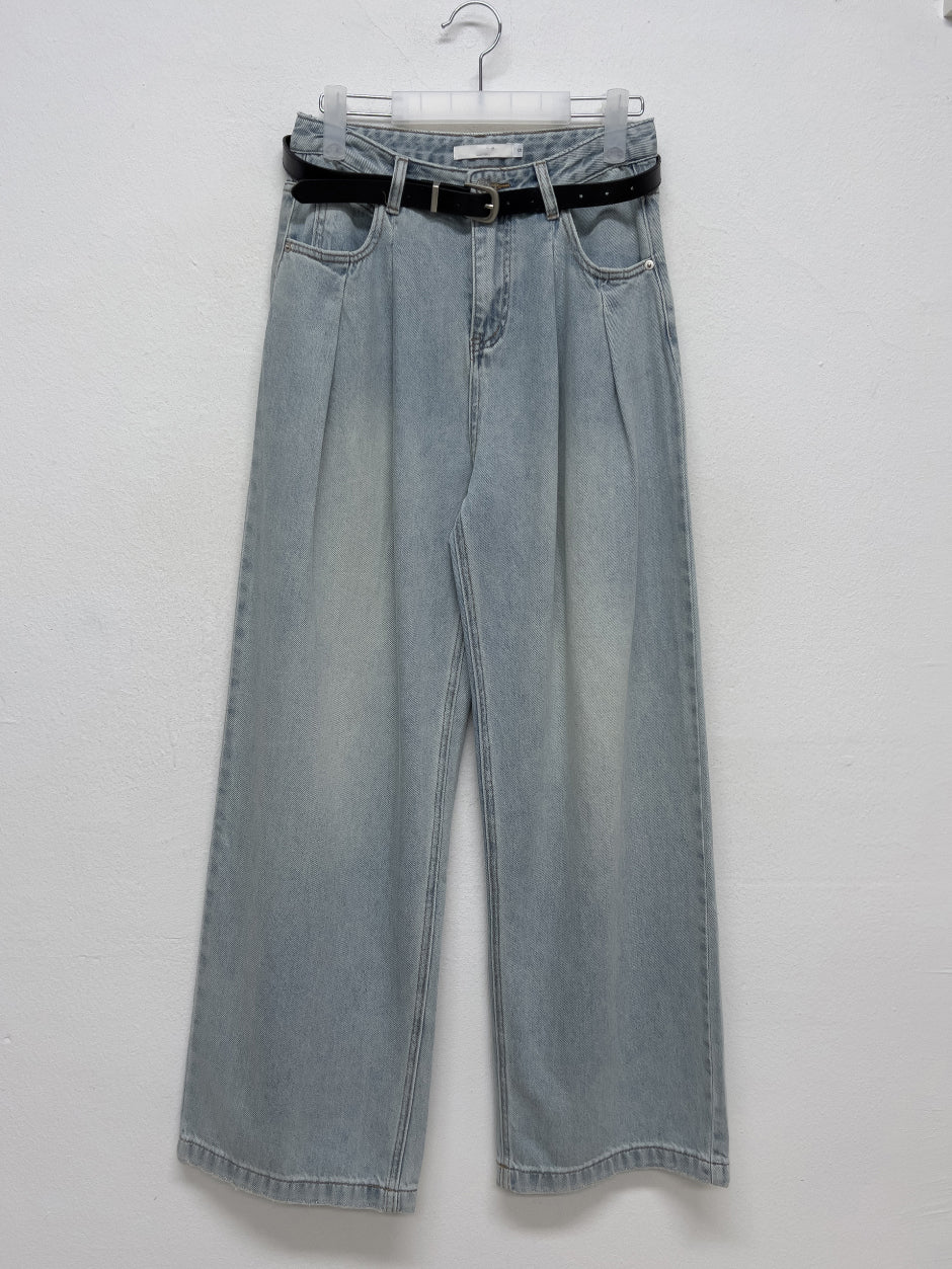 [ベルトセット]スタンピンタックワイドデニムパンツ