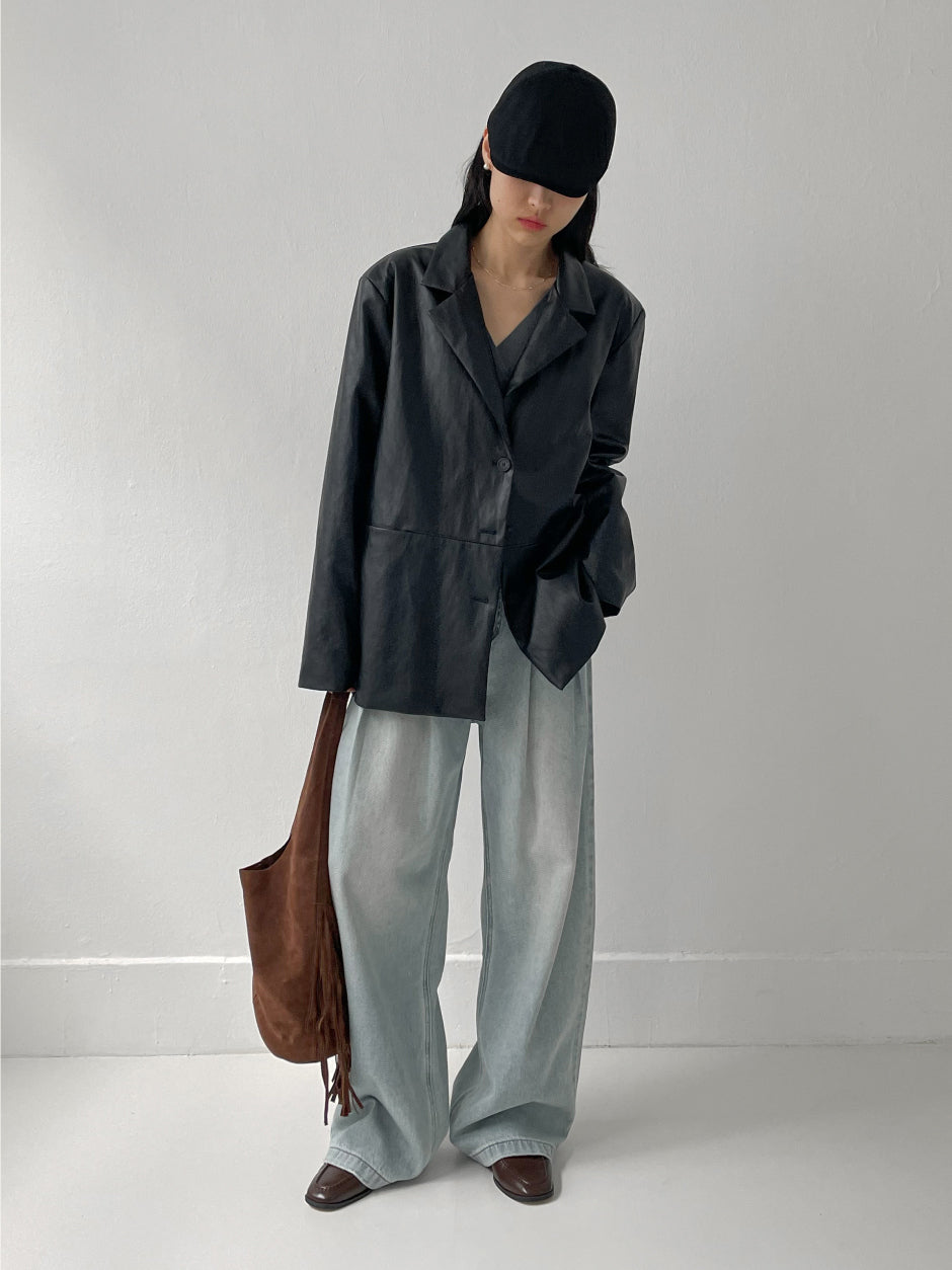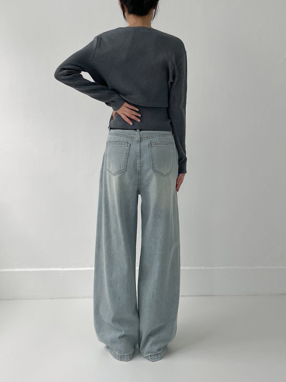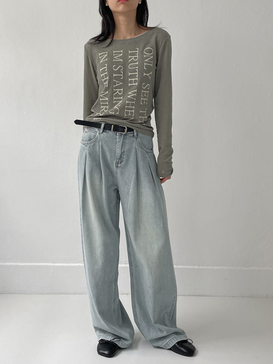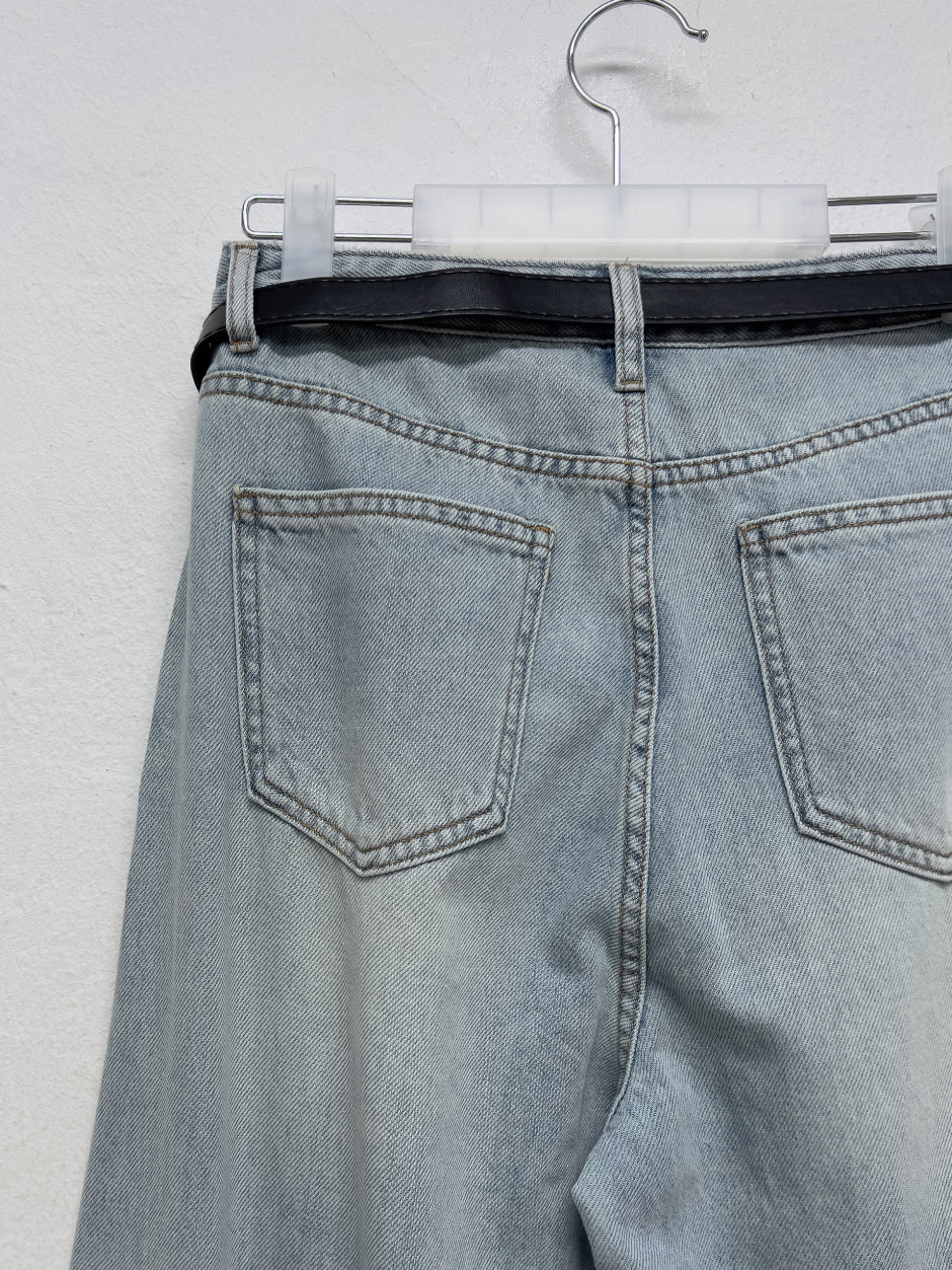 [ベルトセット]スタンピンタックワイドデニムパンツ