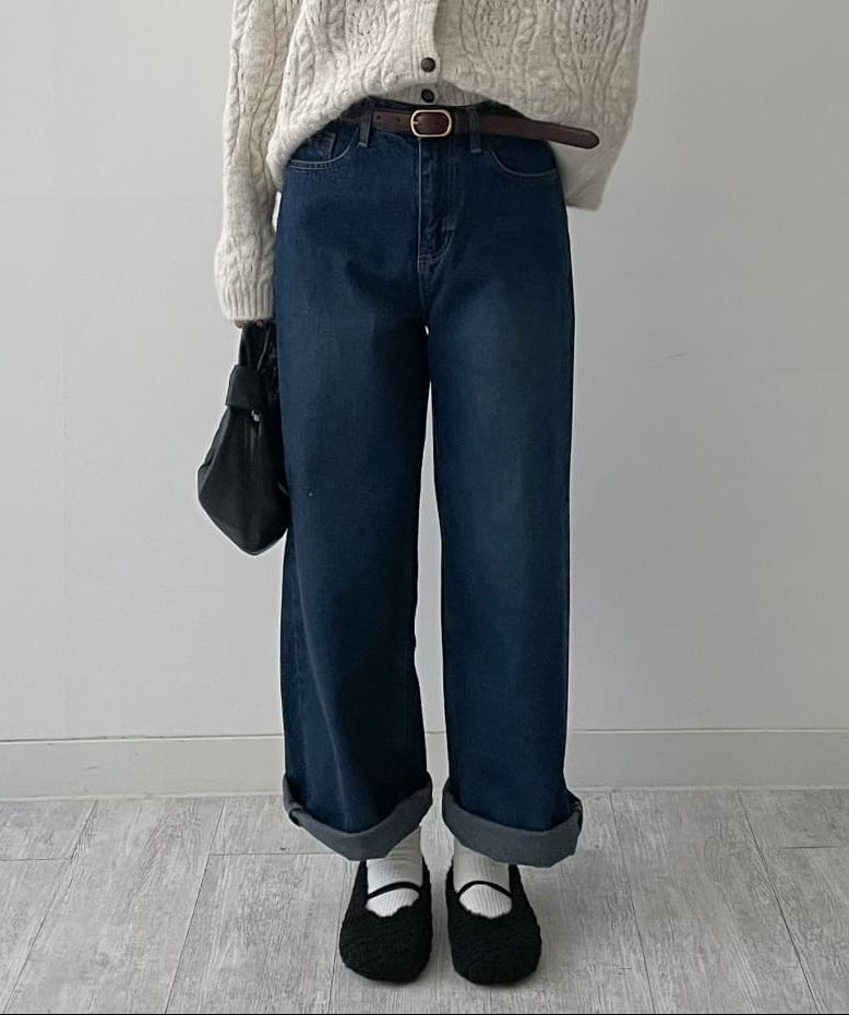 [Fleece lining] 575 wide denim pants