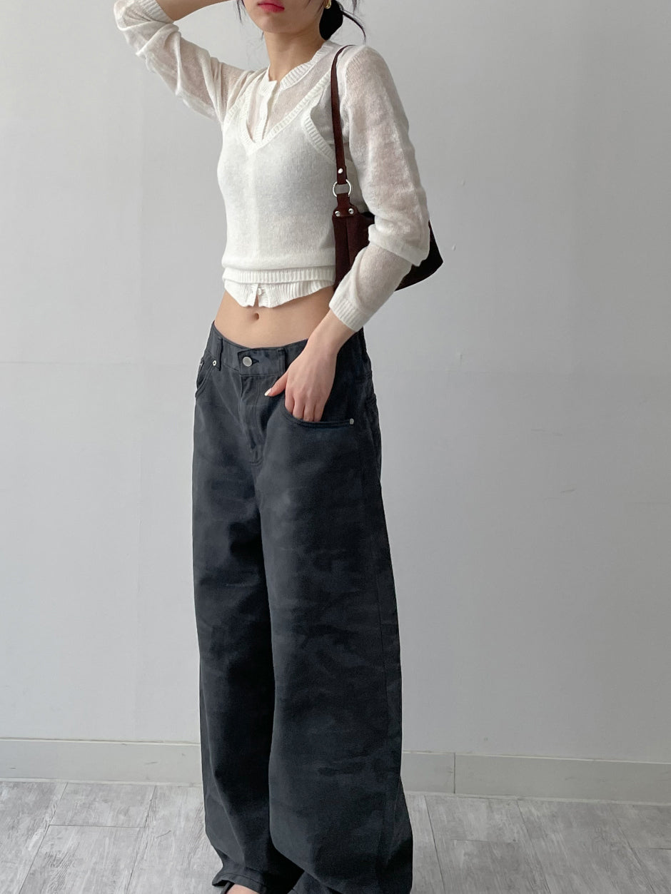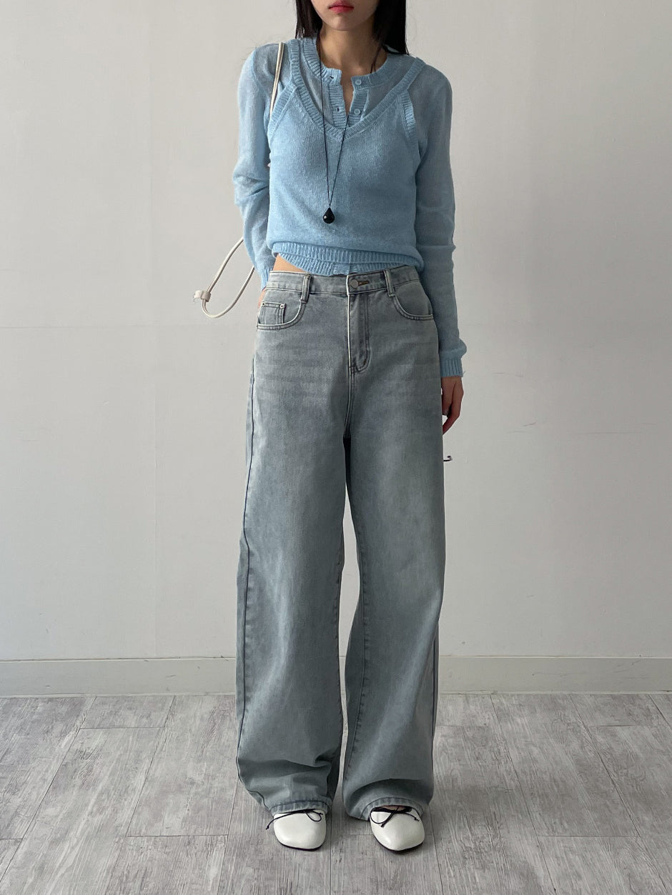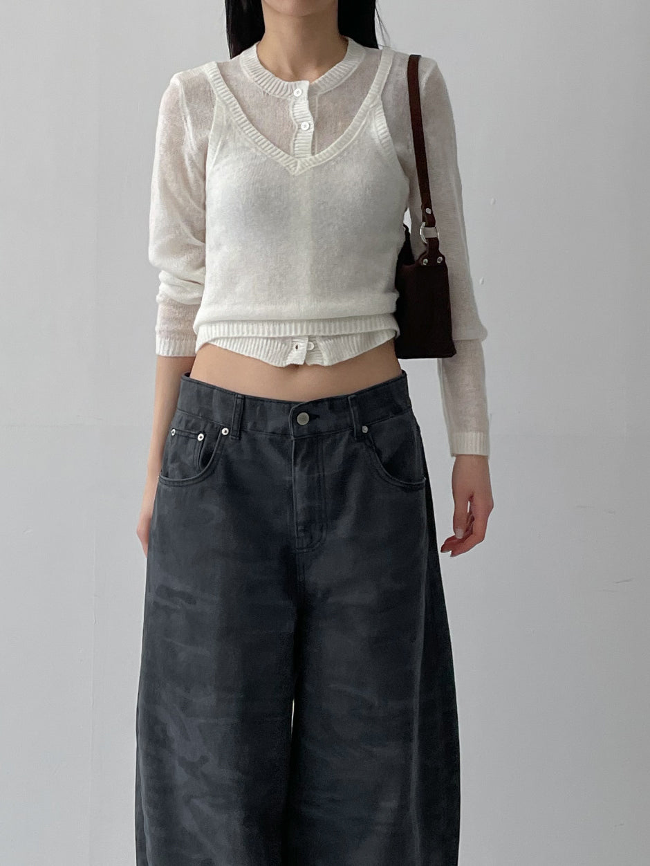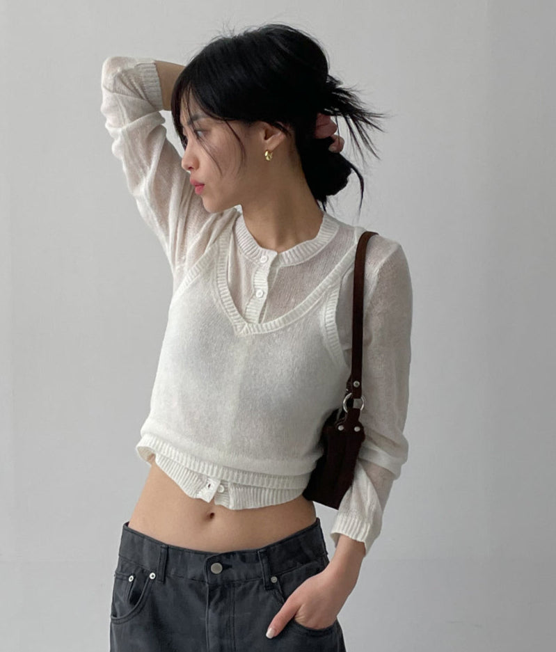 [Bustier SET] Mohair see-through crop cardigan