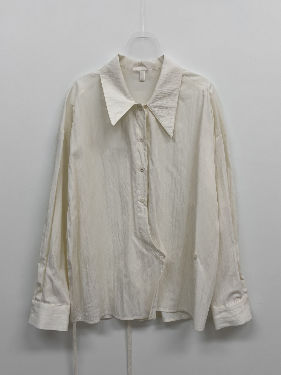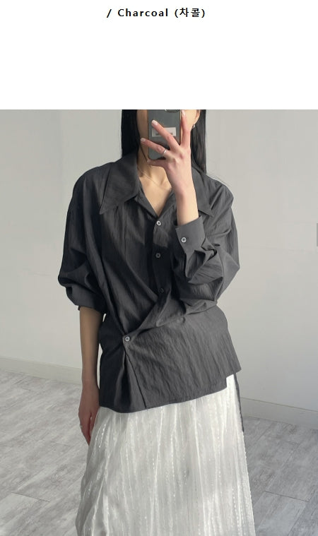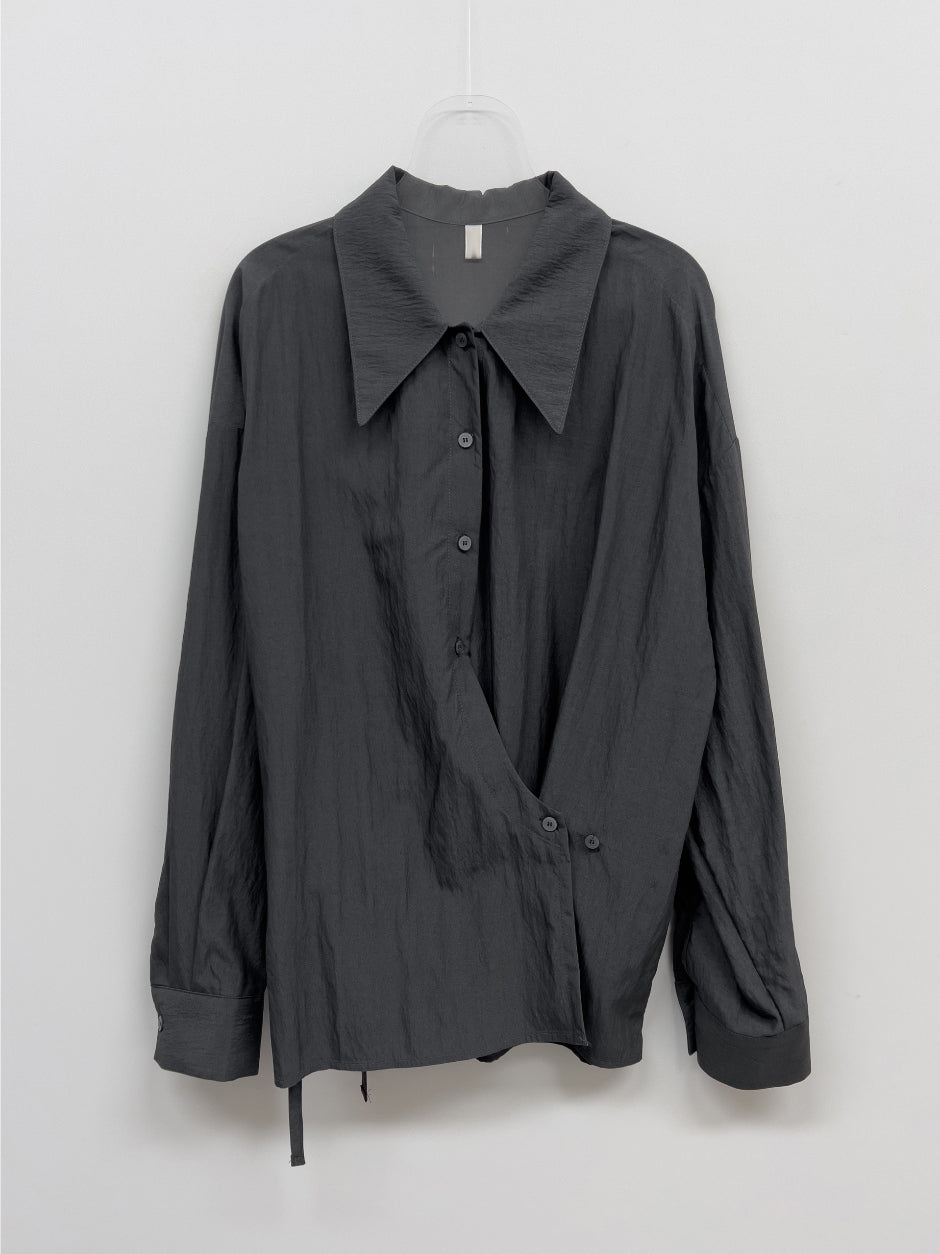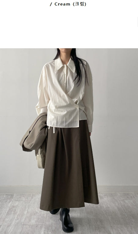 クリンクルビッグ襟付きラップブラウス