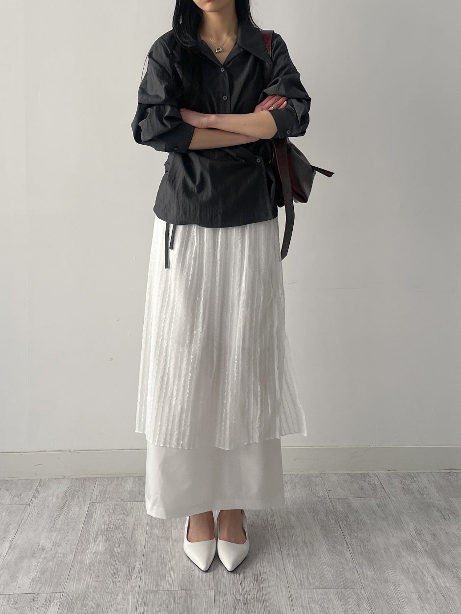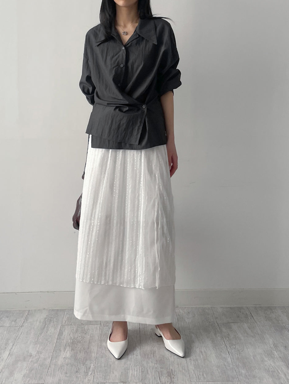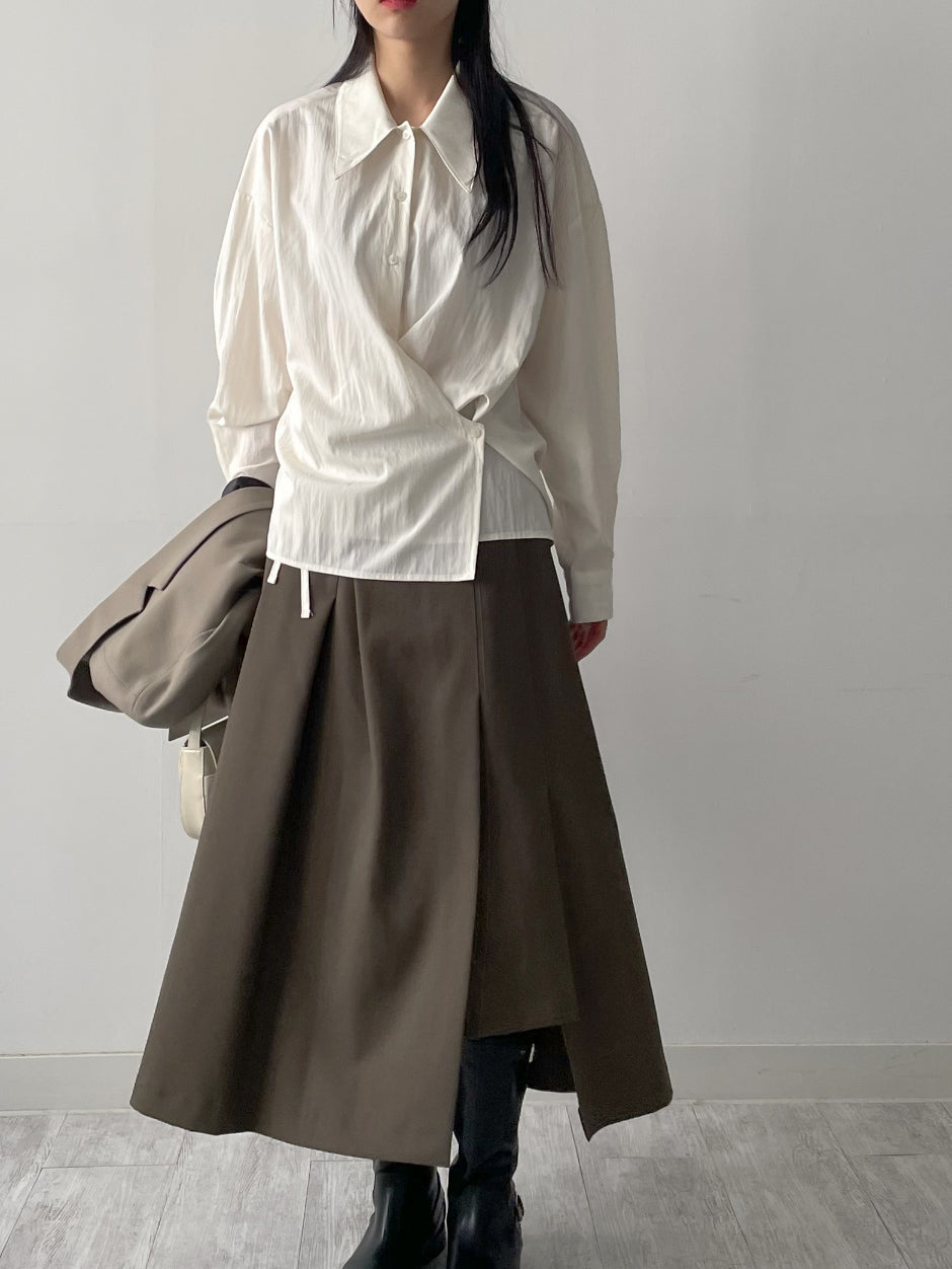 クリンクルビッグ襟付きラップブラウス