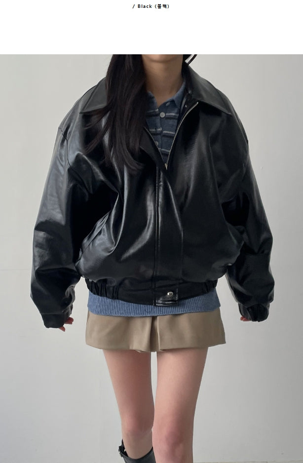 Crocker Glossy Leather Overfit Blouson
