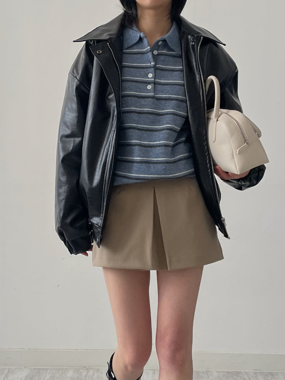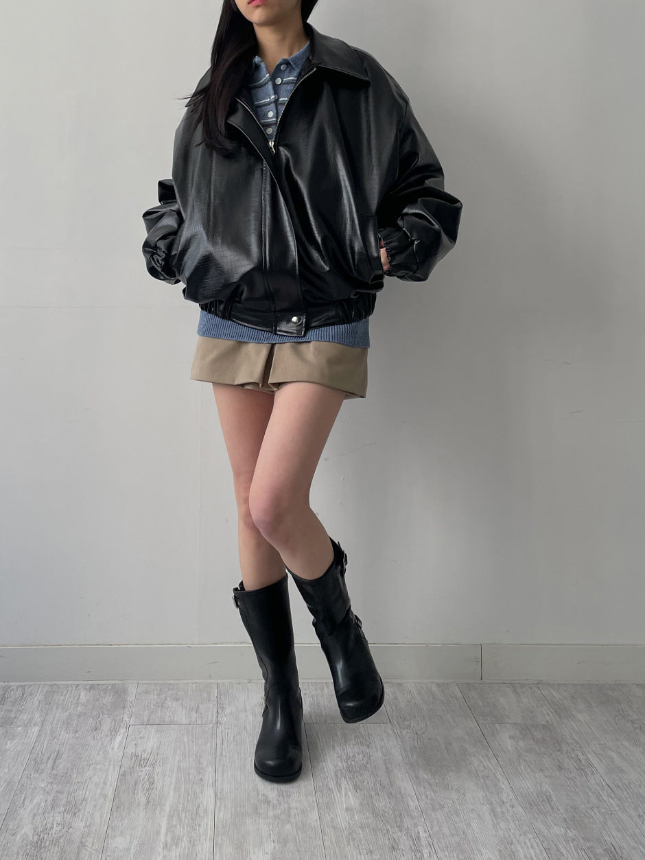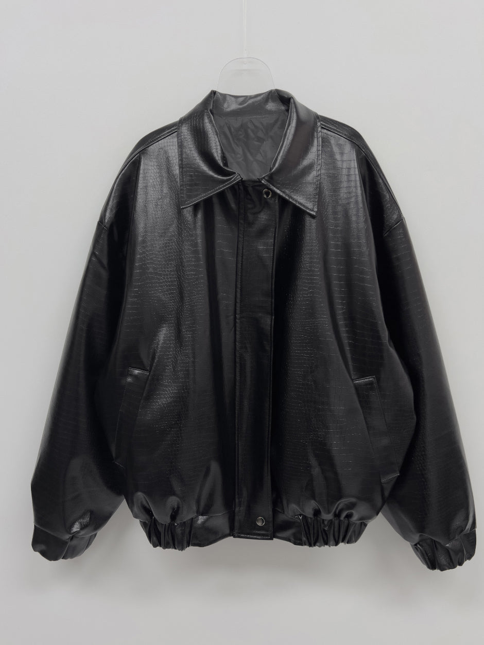 クロッカーグロッシーレザーオーバーフィットブルゾン