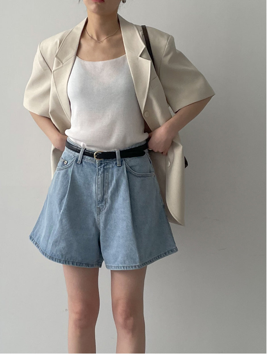 キュロットワイドデニムショートパンツ