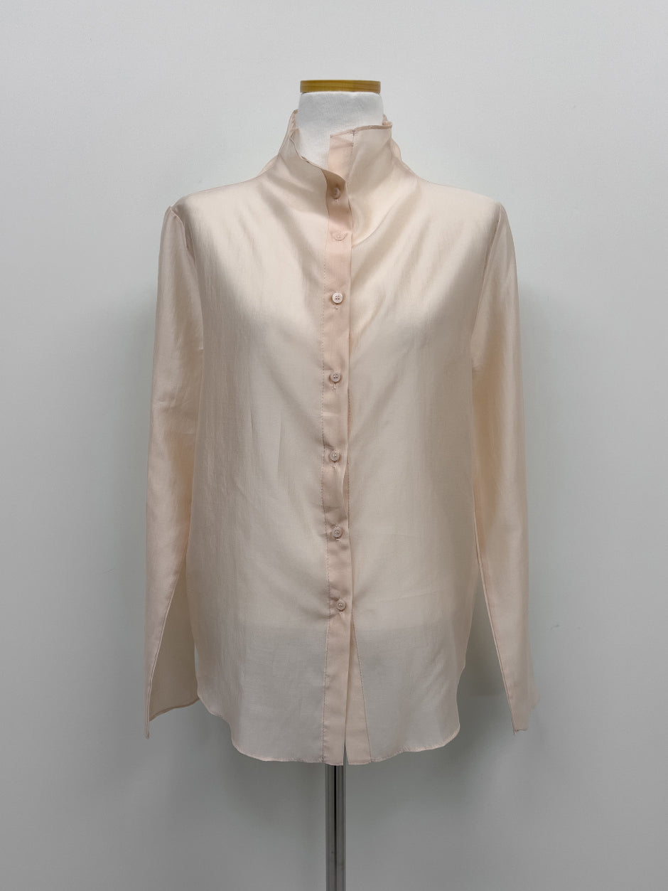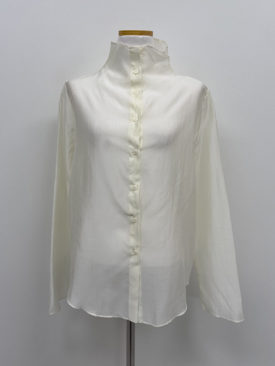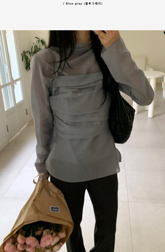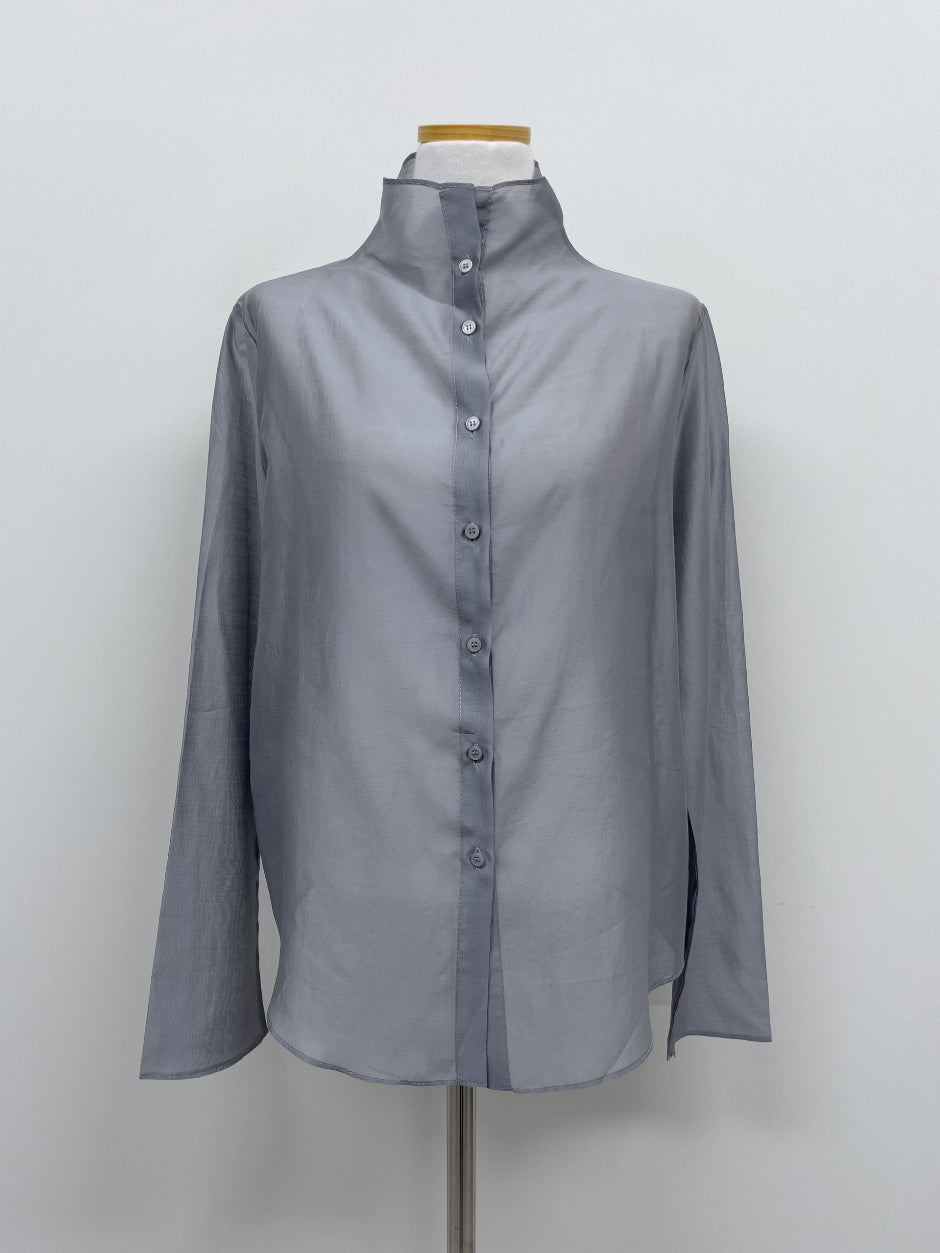 Dent High Neck Tencel See-Through Blouse