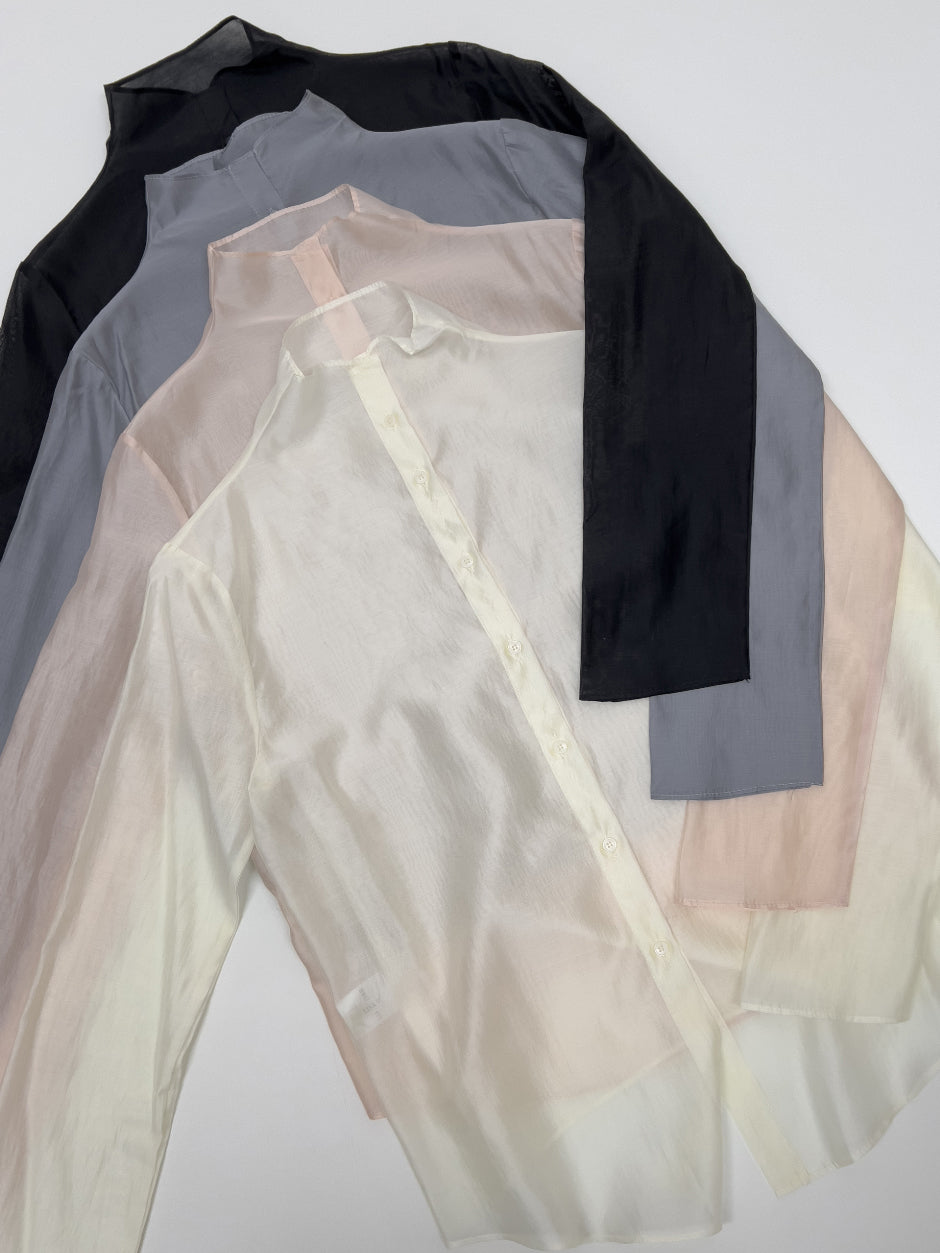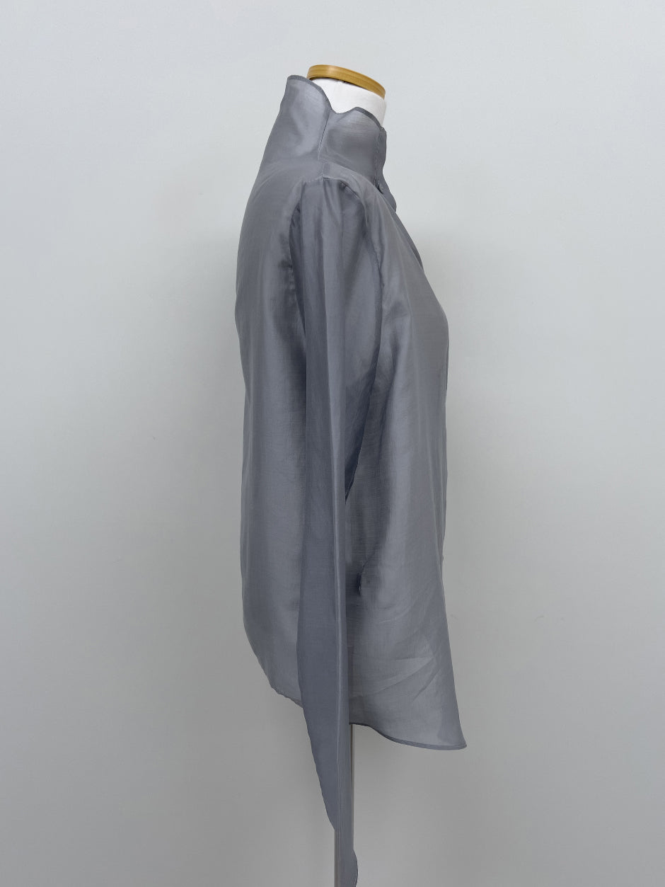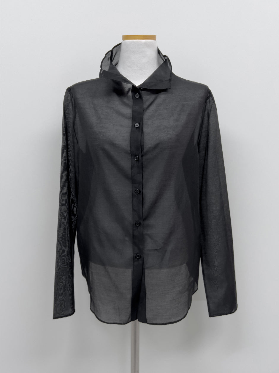 Dent High Neck Tencel See-Through Blouse
