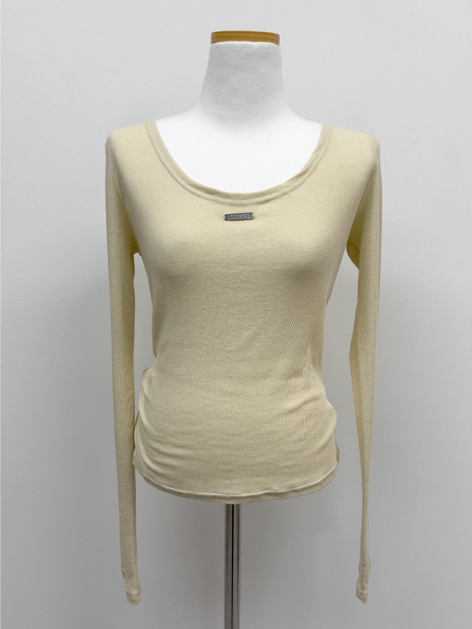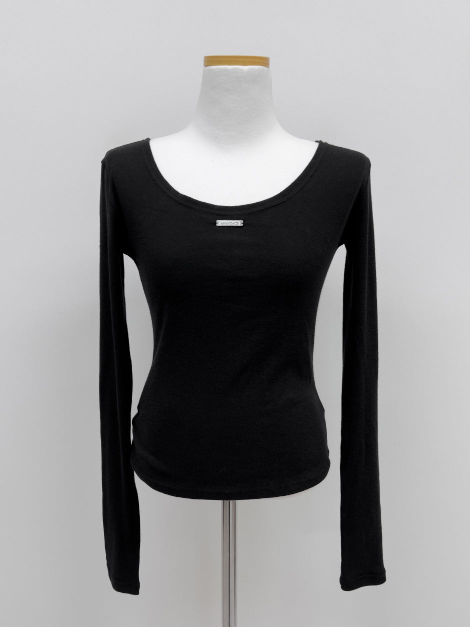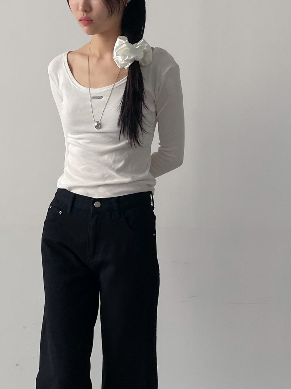 Dipping U-neck Long Sleeve T-shirt