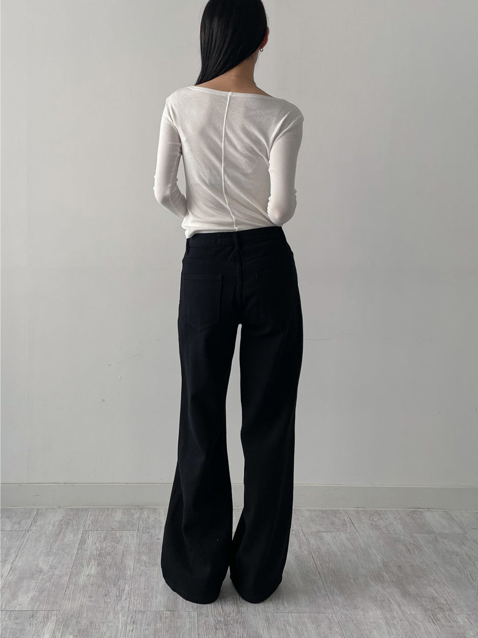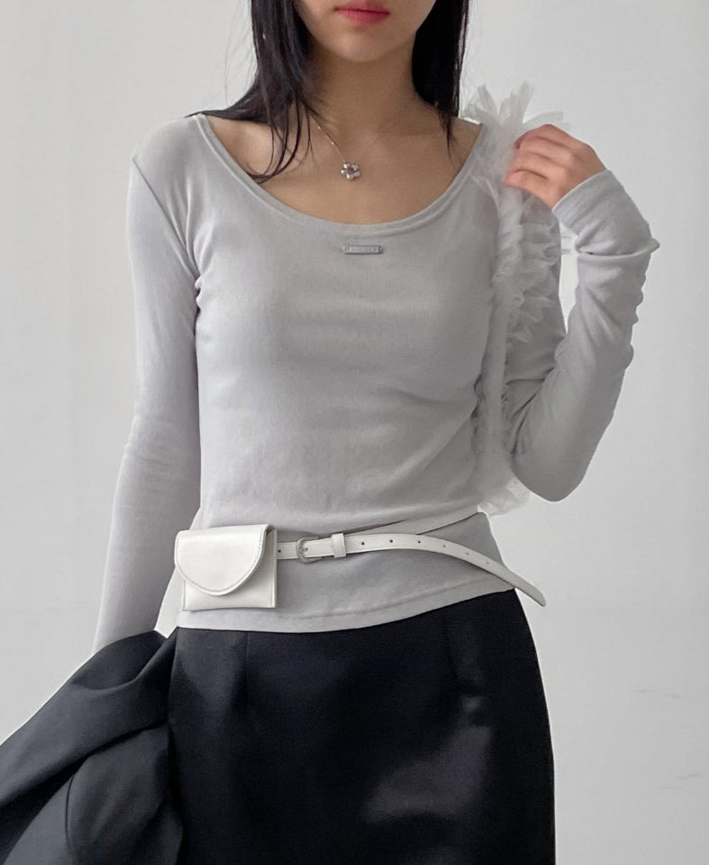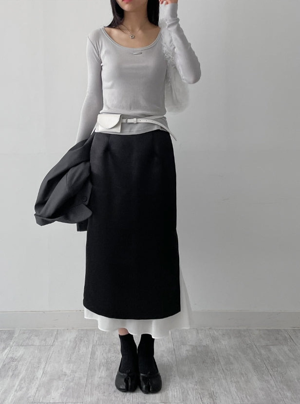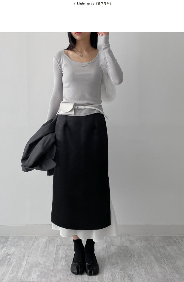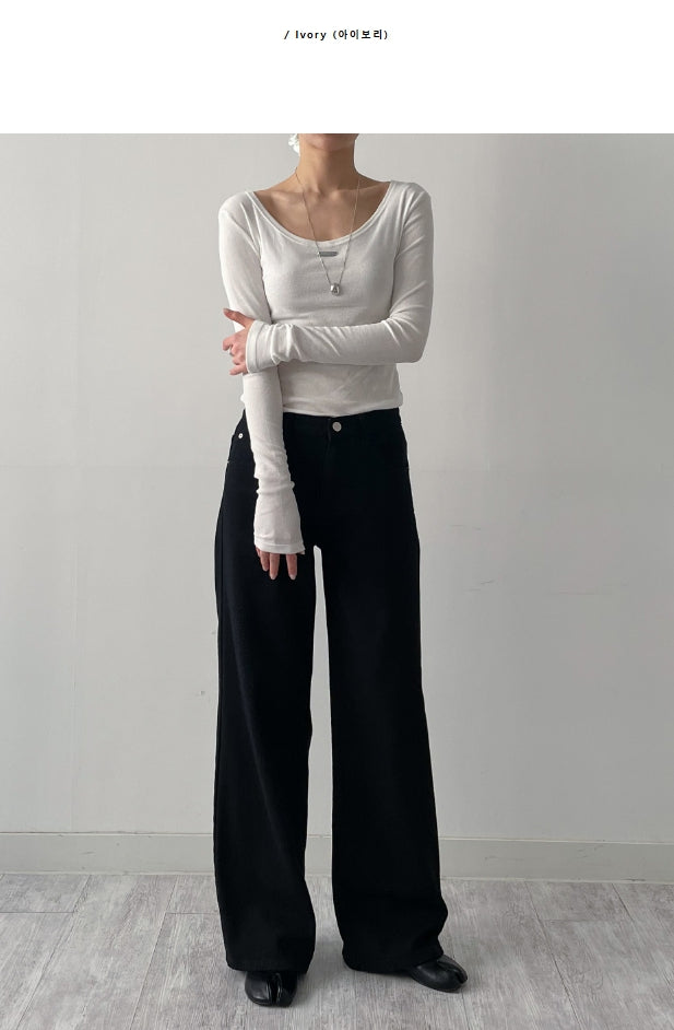 Dipping U-neck Long Sleeve T-shirt